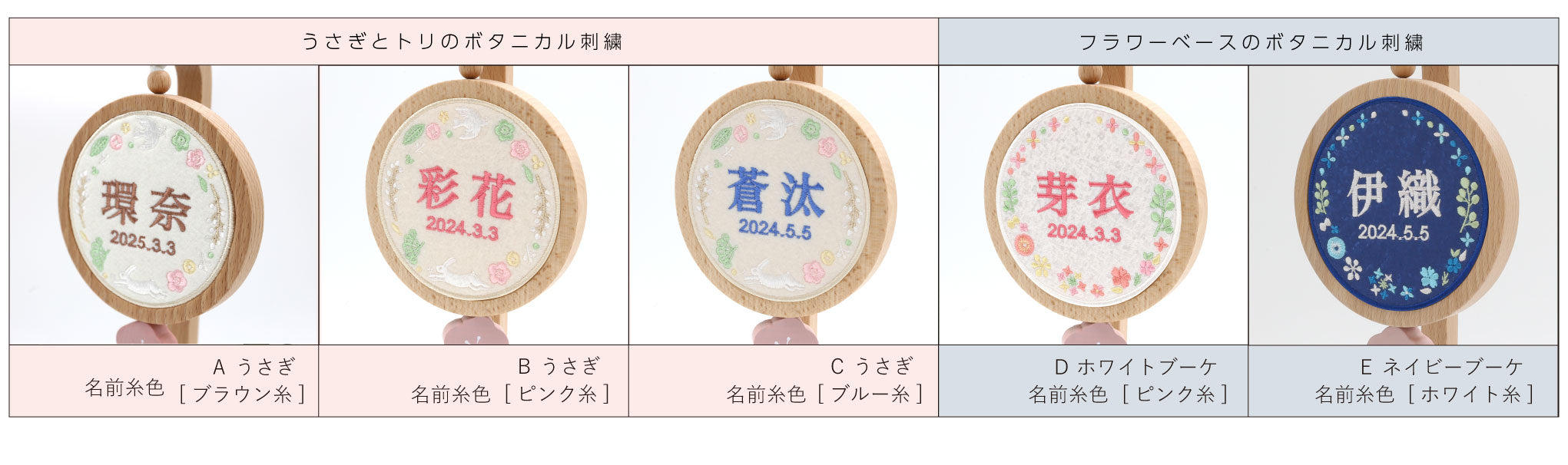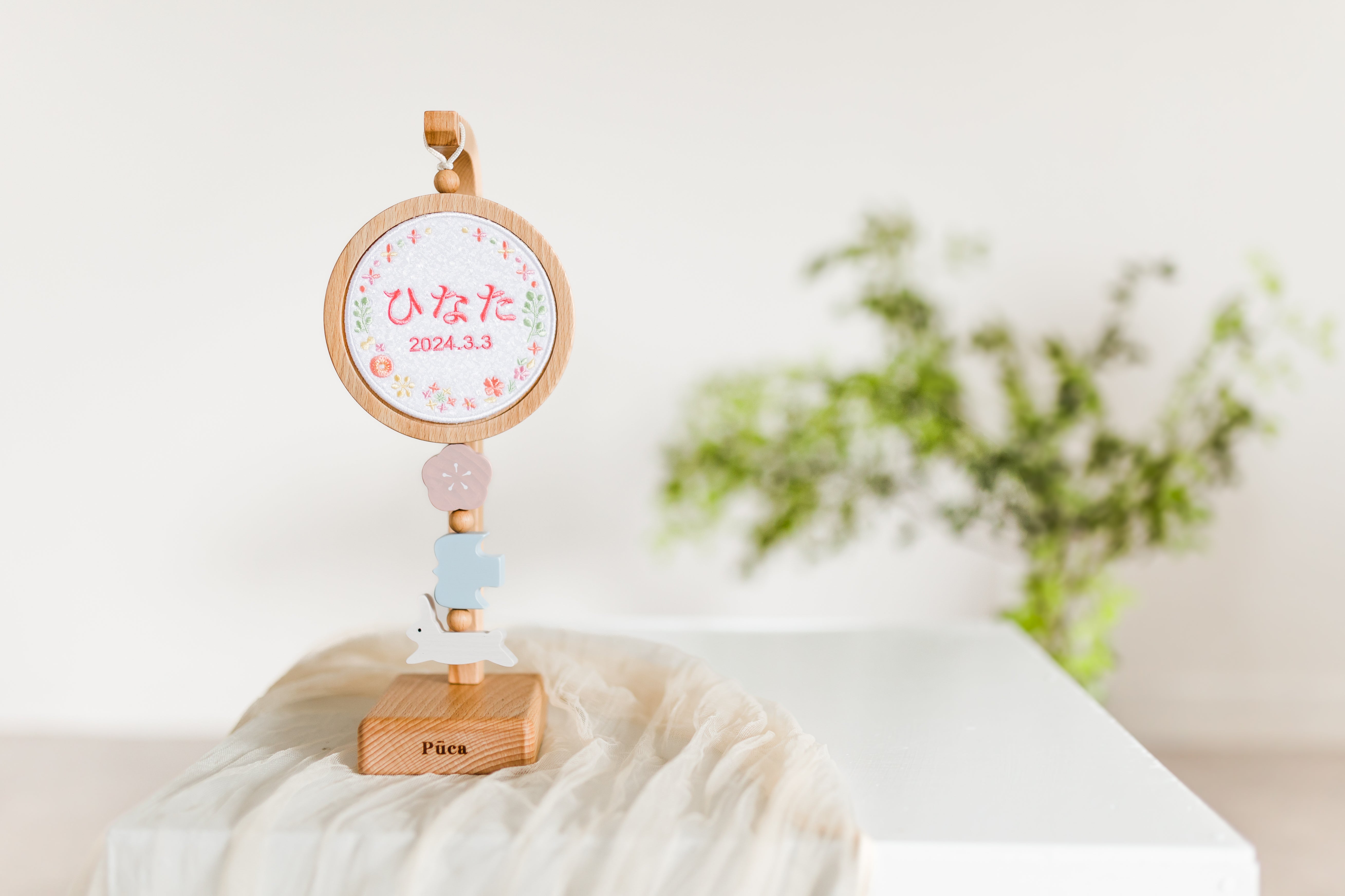 Puca 刺繍名前飾り 【くるくる】うさぎ ピンク系・ブラウン系