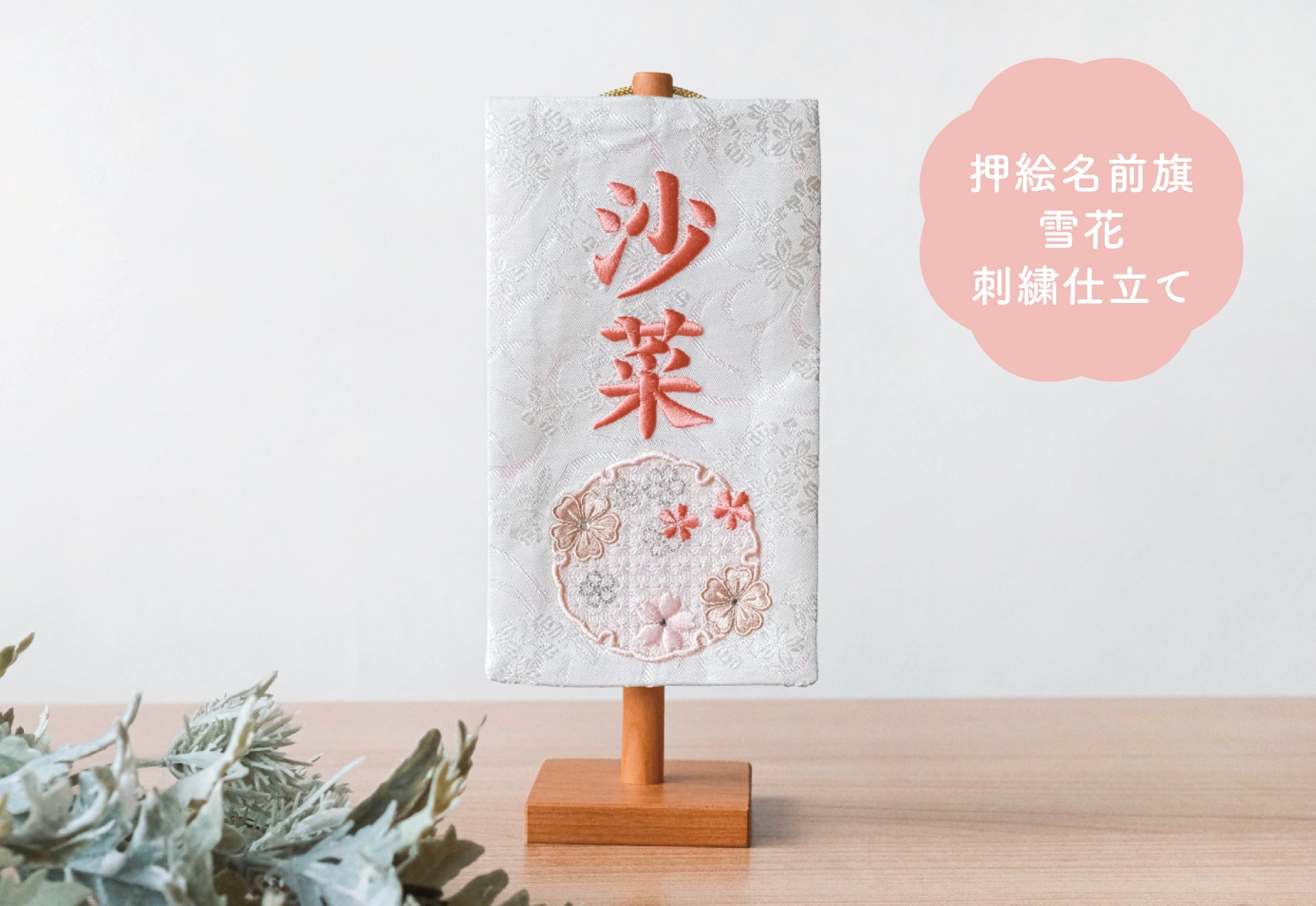 押絵名前旗<雪花> 特小・小 刺繍仕立て