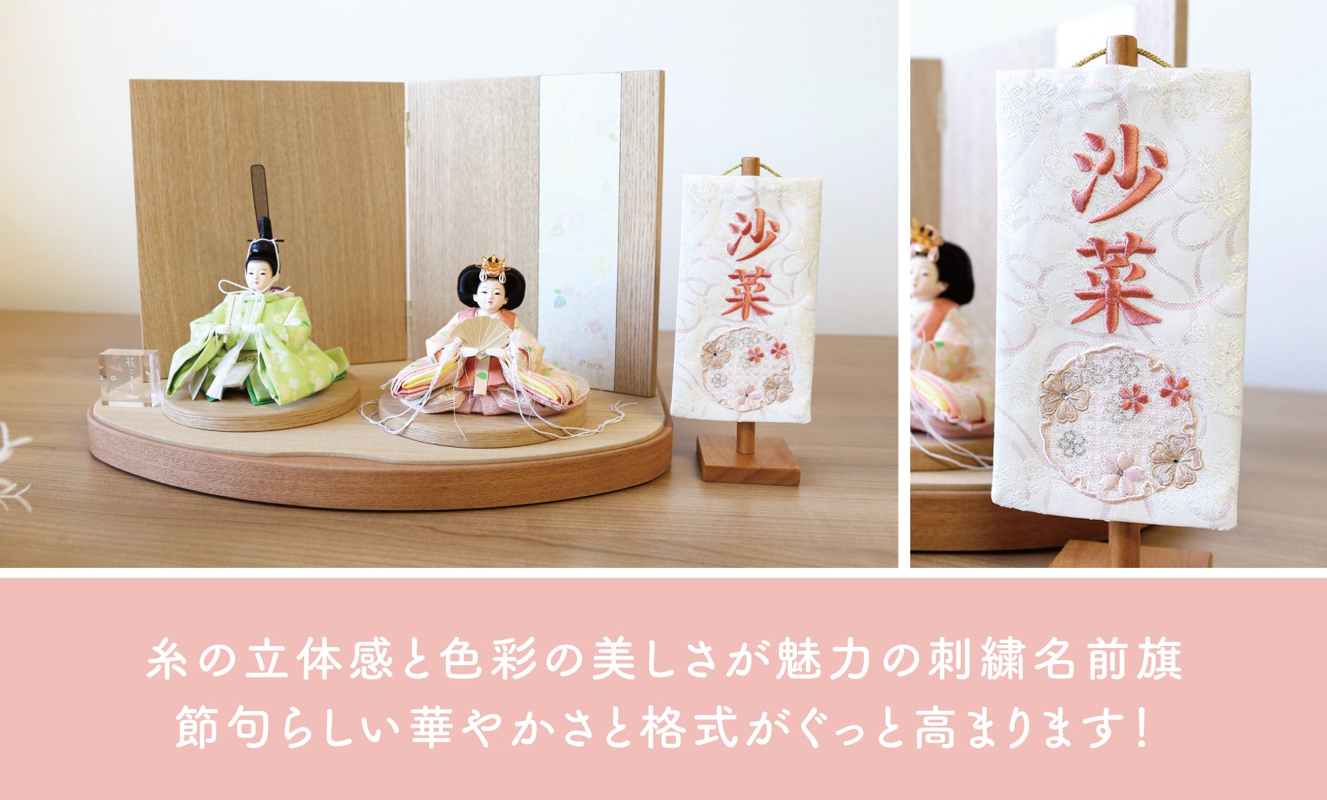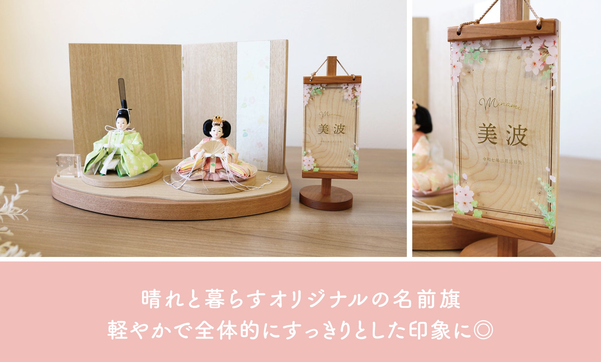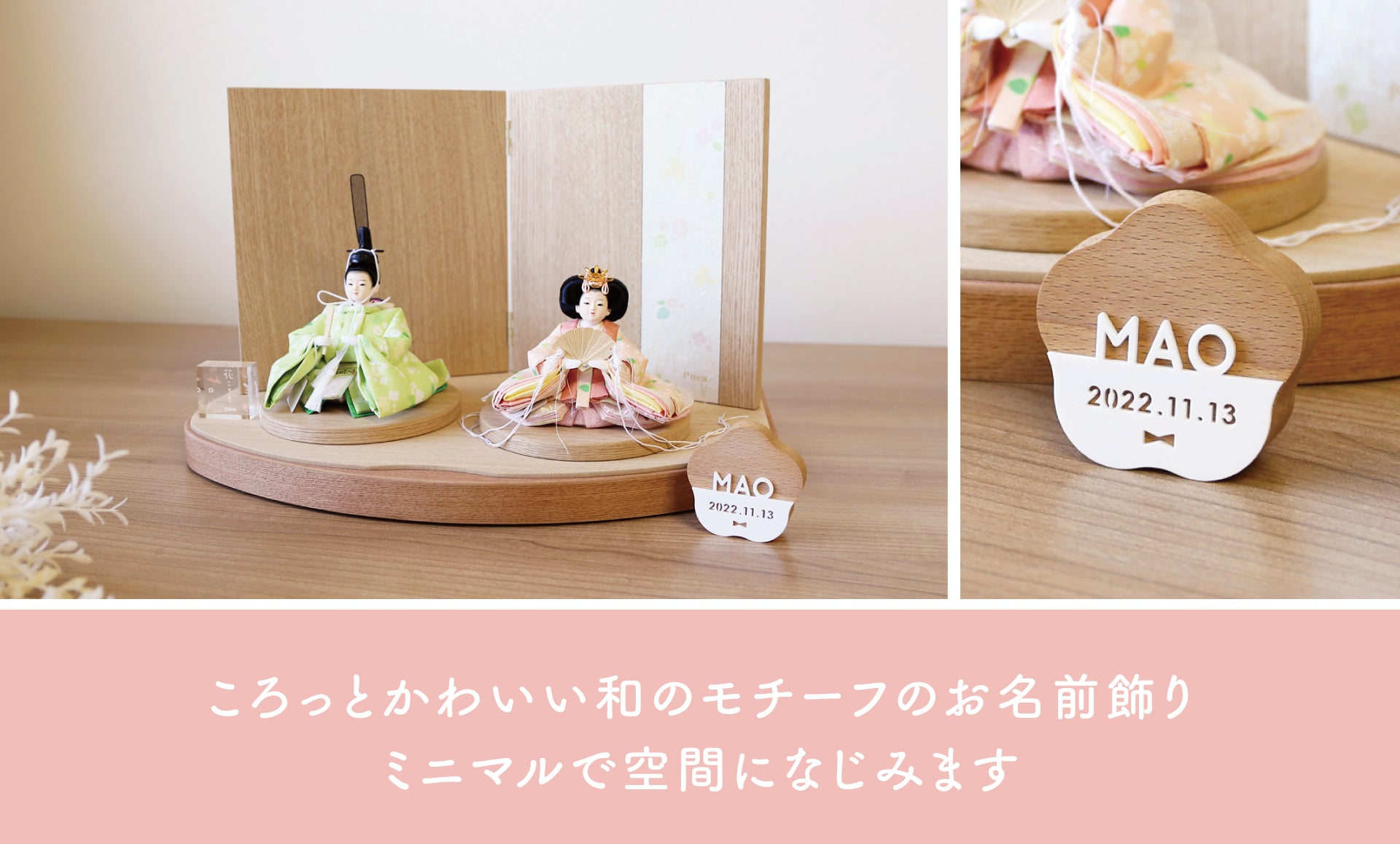 名前飾りひとつで、雛人形の印象はぐっと変わります。