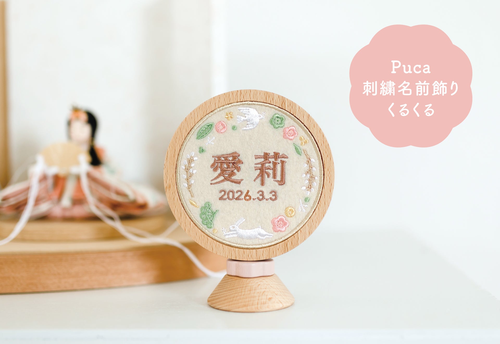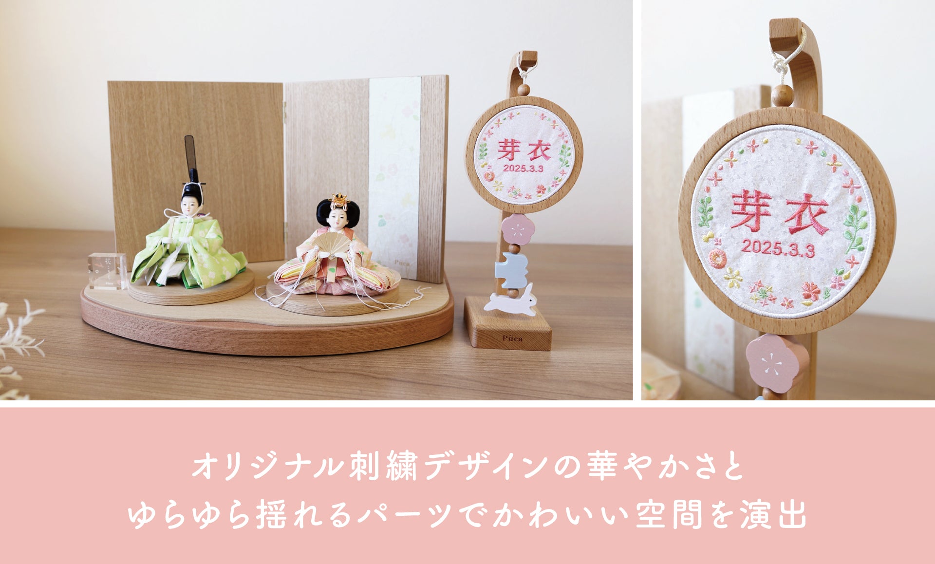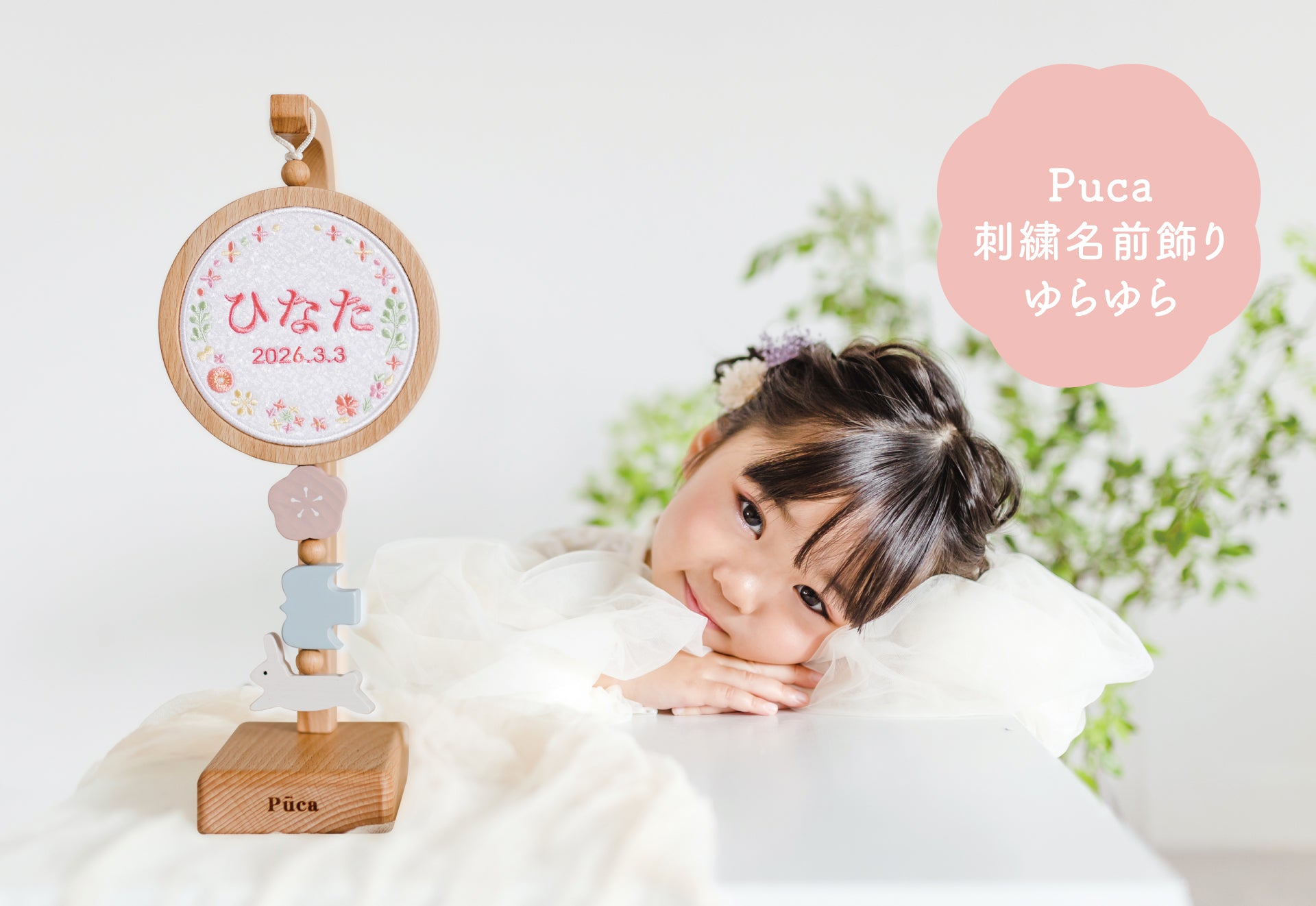 Puca 刺繍木製名前旗 【ゆらゆら】 ピンク系・ブラウン系