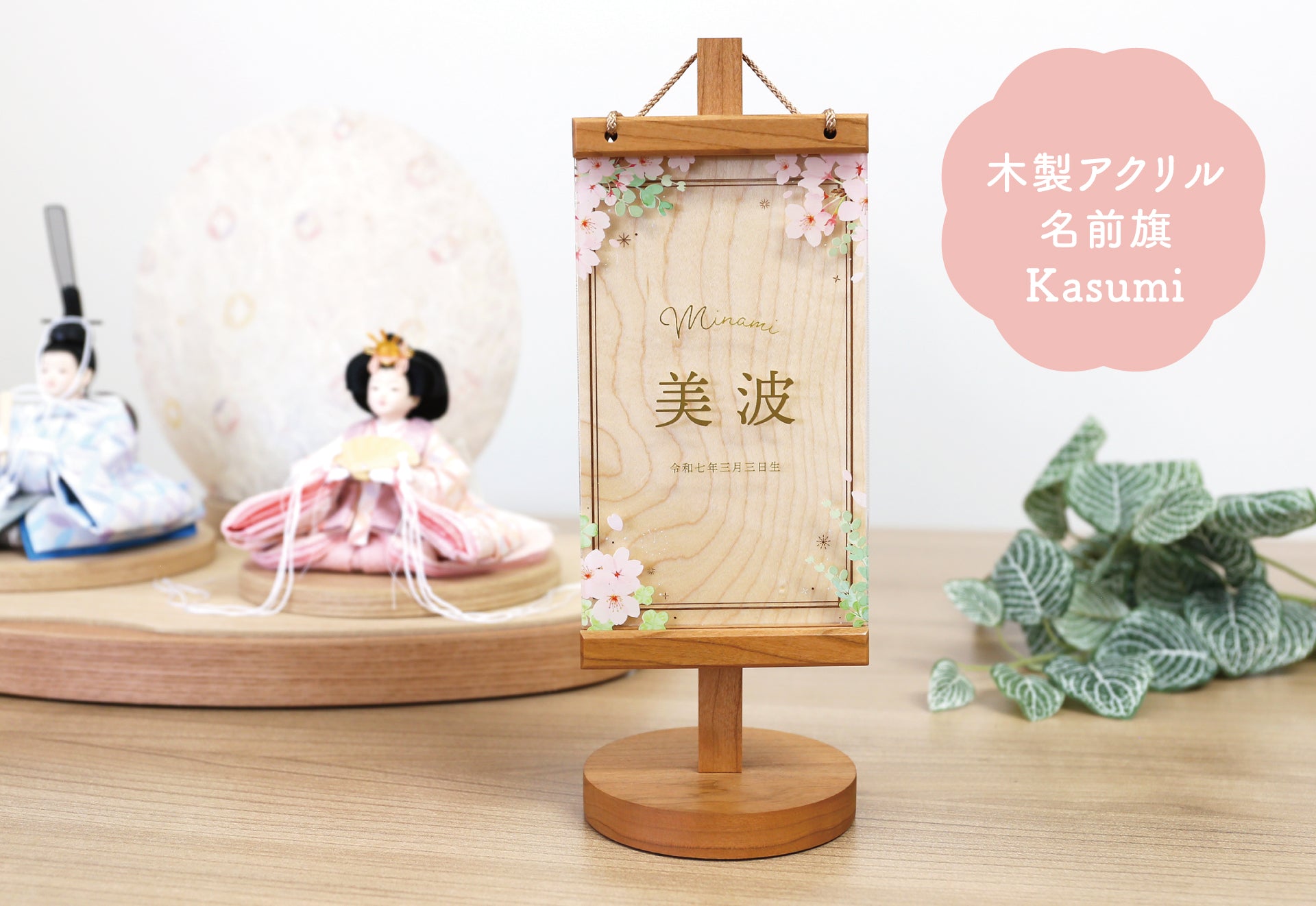 木製アクリル名前旗 Kasumi さくら色