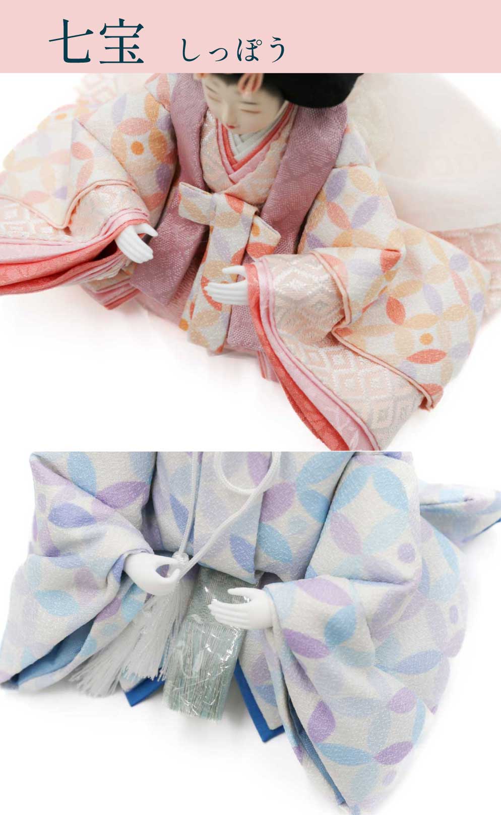 円形が永遠に連鎖しつながる七宝柄には、「円満」や「調和」、「ご縁」などの願いが込められています。 また人と人の関係が無限につながっていく、さらには子孫繁栄で家が大きくなっていくという意味も込められています。