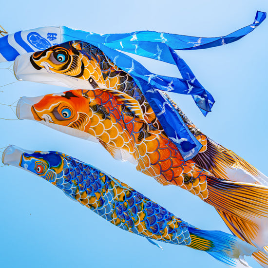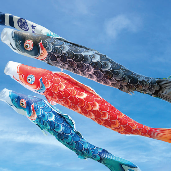 鯉のぼりは、大空を悠々と泳ぐ鯉のぼりのように元気に逞しく育ってほしいという『健やかな成長と立身出世を願う』思いが込められています。