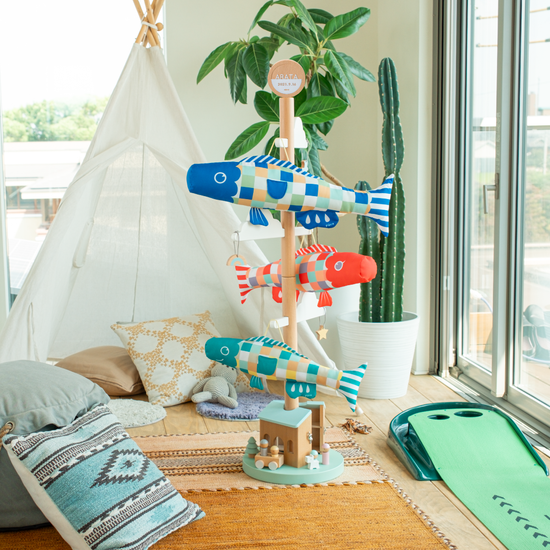 A. 「Pucaの鯉のぼり」は、インテリアにもなじむやさしい色合いと、可愛らしさとシンプルなデザインが特徴です。伝統の鯉のぼりを現代の暮らしに合わせてデザインし、リビングや玄関にも飾れるおしゃれな鯉のぼりとして人気です。