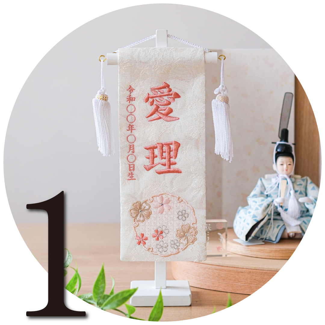 ちいさな刺繍名前旗<ゆうり> 金襴刺繍名前旗 特小/無垢台