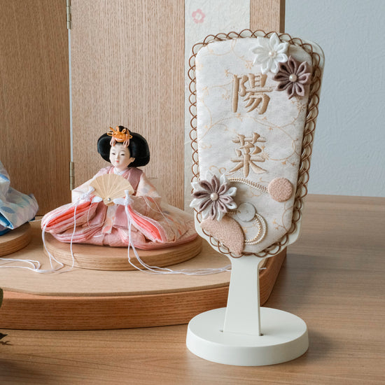 正絹 刺繍名入れ羽子板飾り マロン 刺繍名前旗