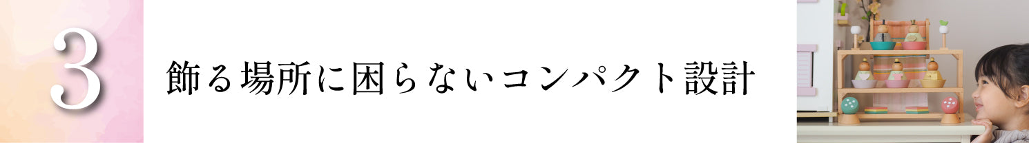 そうした中で、雛人形を飾る場所がなくなったり、飾るのが面倒にならないようにコンパクト設計にこだわりました。