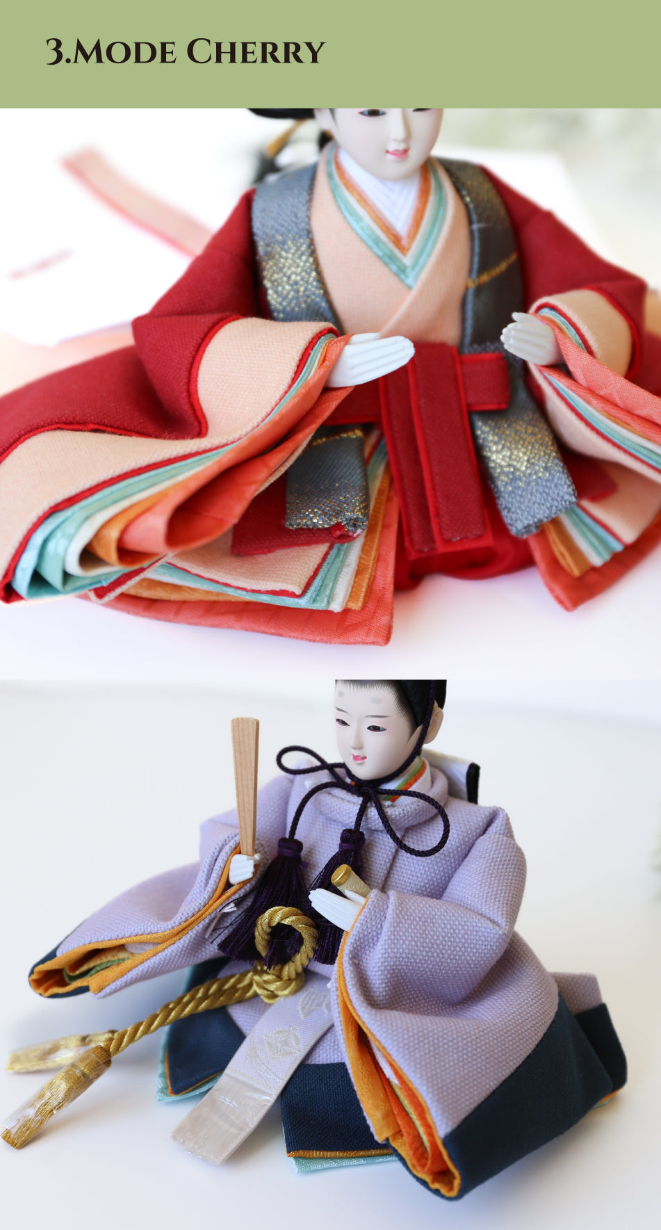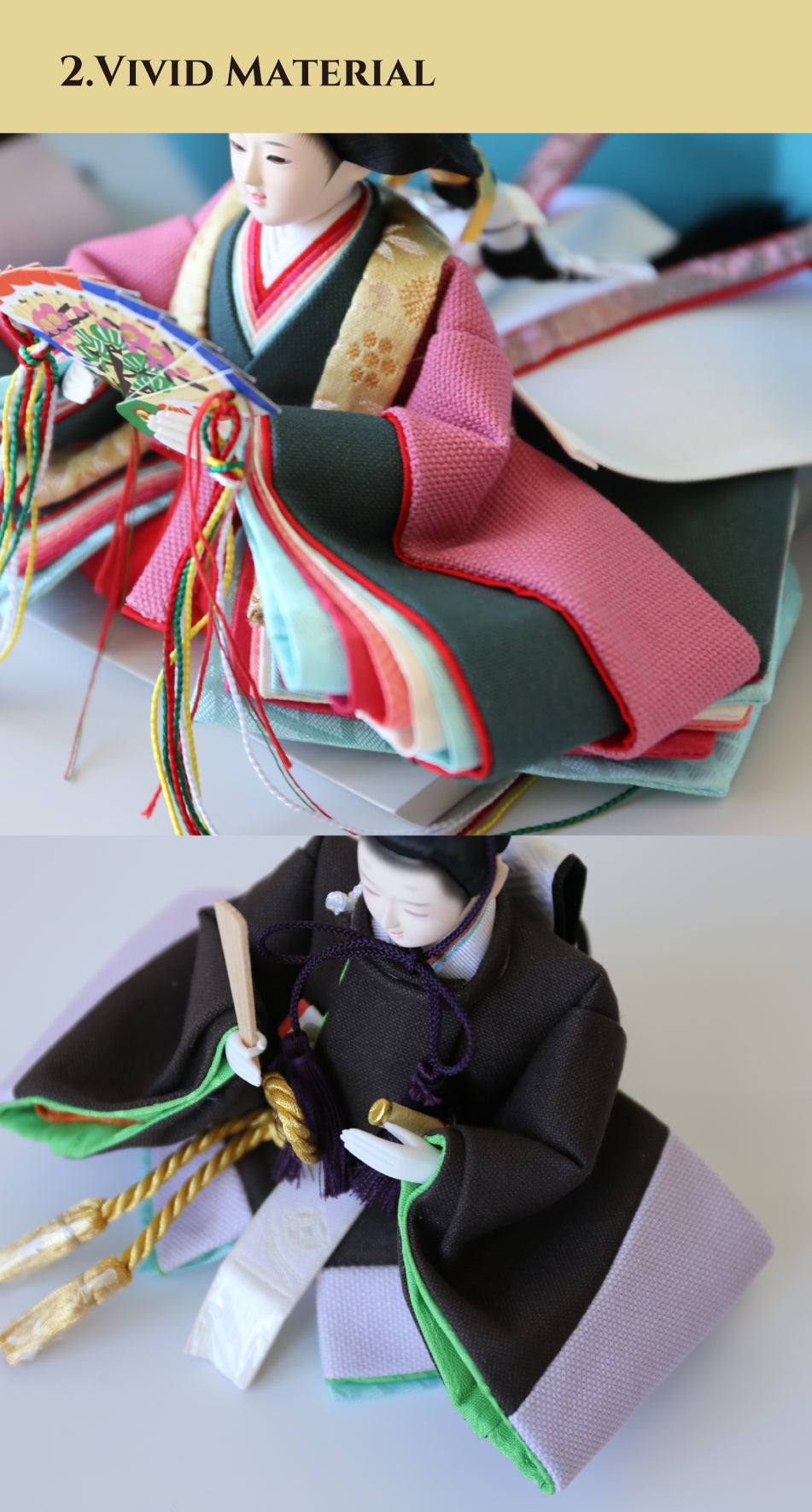 We have adopted the most classic colour scheme among KIMONO Hina dolls, giving a modern finish to the typically Japanese colour scheme.