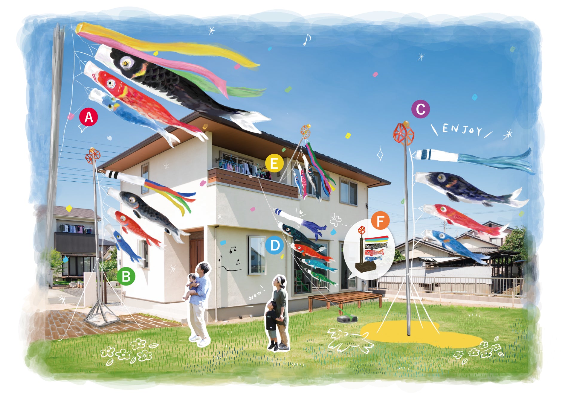 Which carp streamer would you like to decorate your home with? Get an idea from the illustrations below!