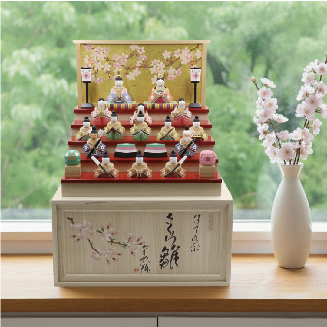 十五人揃いの雛飾りは、お子さまの健やかな成長と幸せを願う特別な想いの象徴。