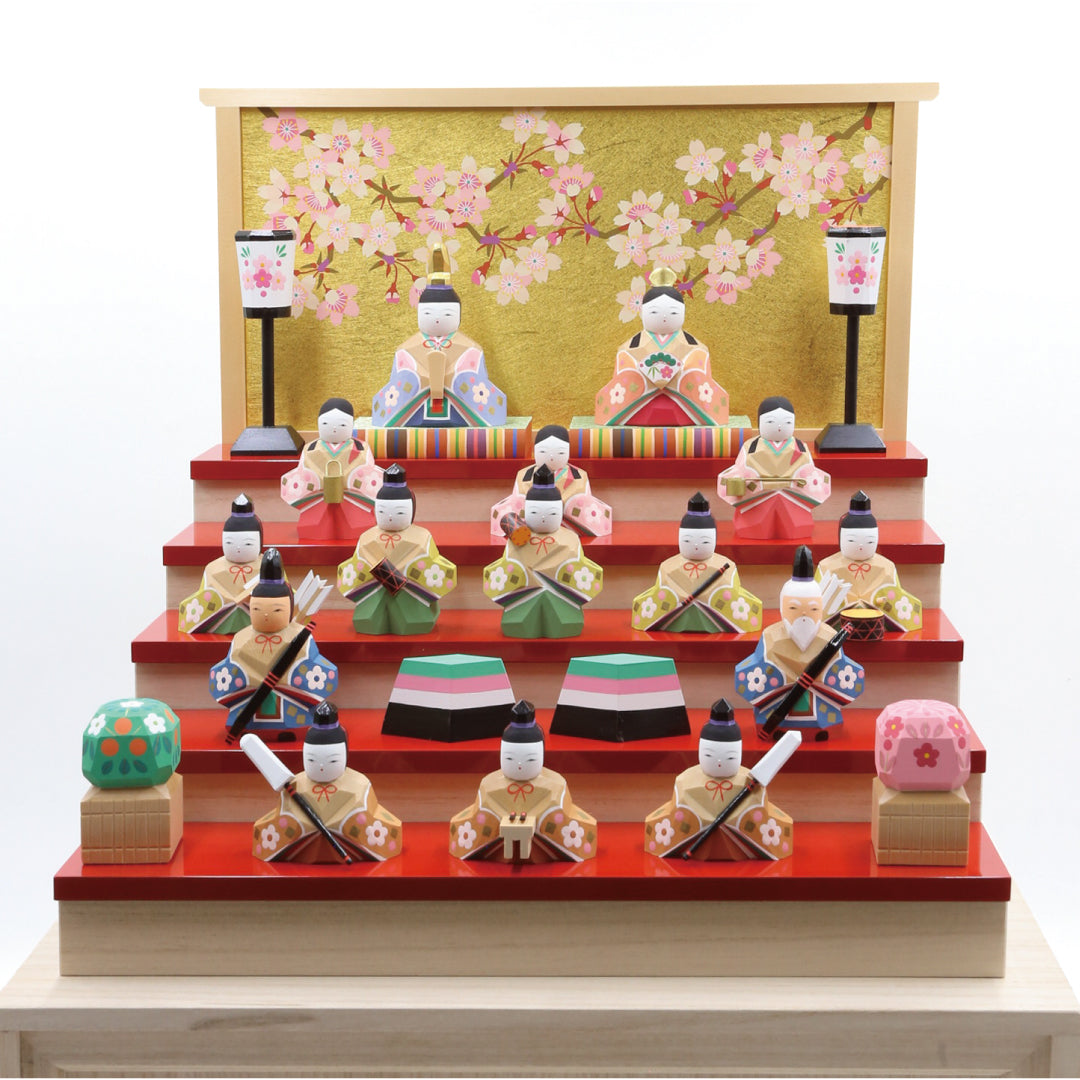 雛人形 伊予一刀彫り さくら雛 五段 十五人飾り【南雲作】