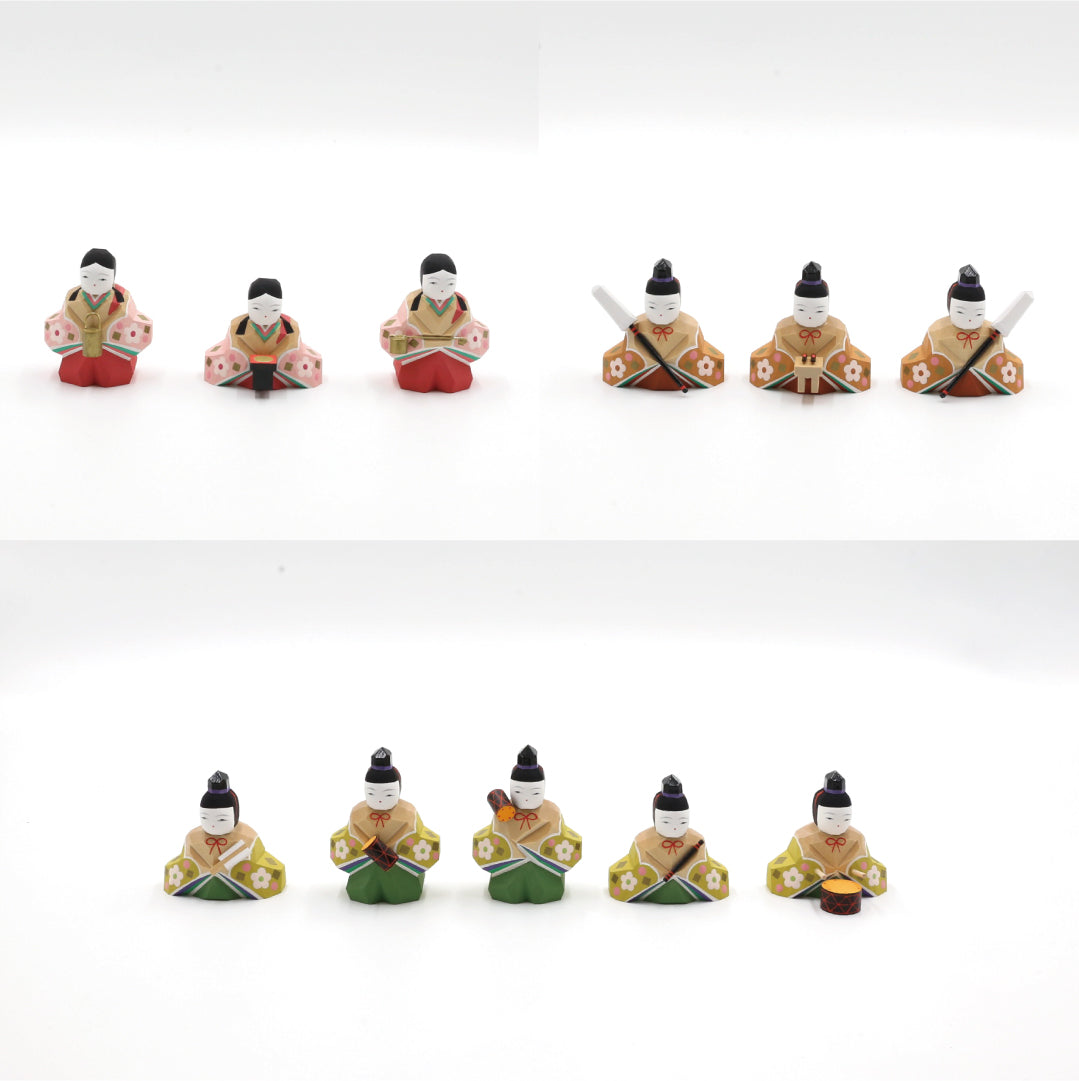 内裏雛を中心に、官女・五人囃子・随身・仕丁までが揃い、