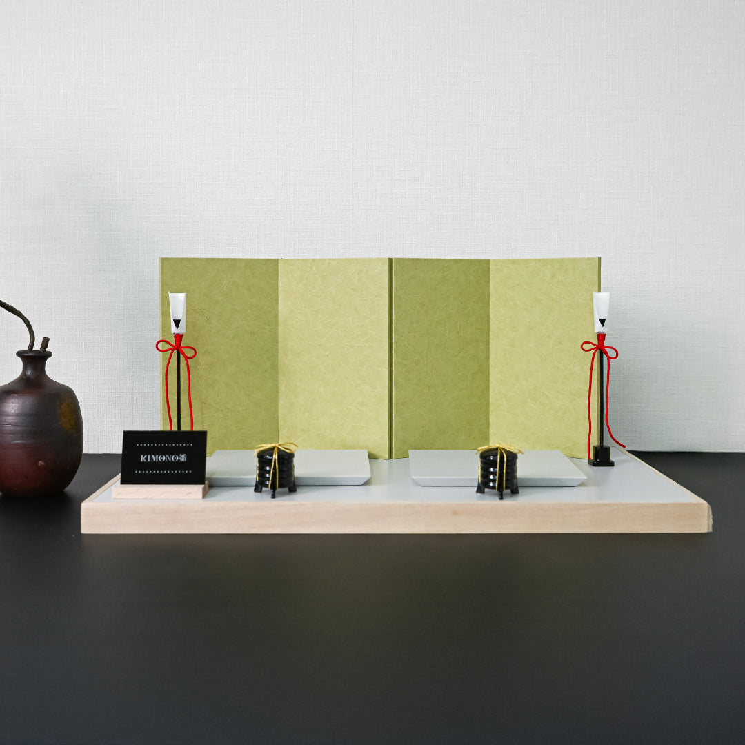 Even so, the KIMONO looks flashy, so that you can display the Hina dolls in your room in style. However, we have designed it with a wide folding screen and pedestal, and the extra space enhances the interior design, making it a spacious and comfortable display despite its compact size. Because it is a decoration, it has been designed faithfully to the aesthetic sensibility of wabi-sabi.