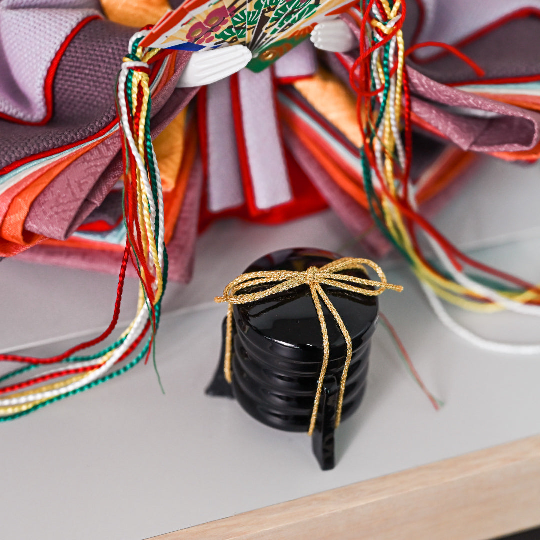 The special texture of the fibers creates a soft, Japanese atmosphere. The simple shape and the contrasting colors add depth to the Hina dolls.