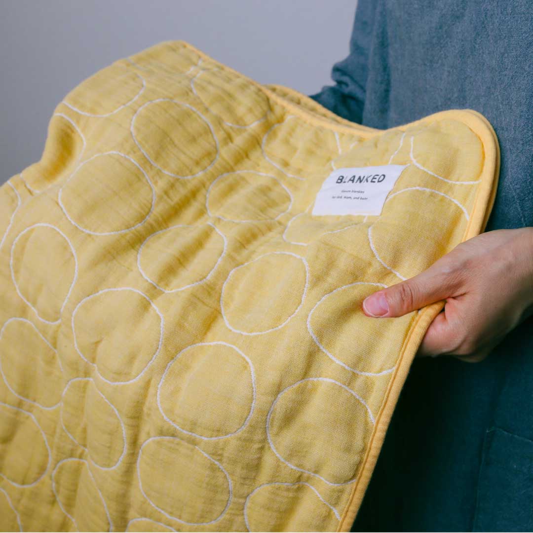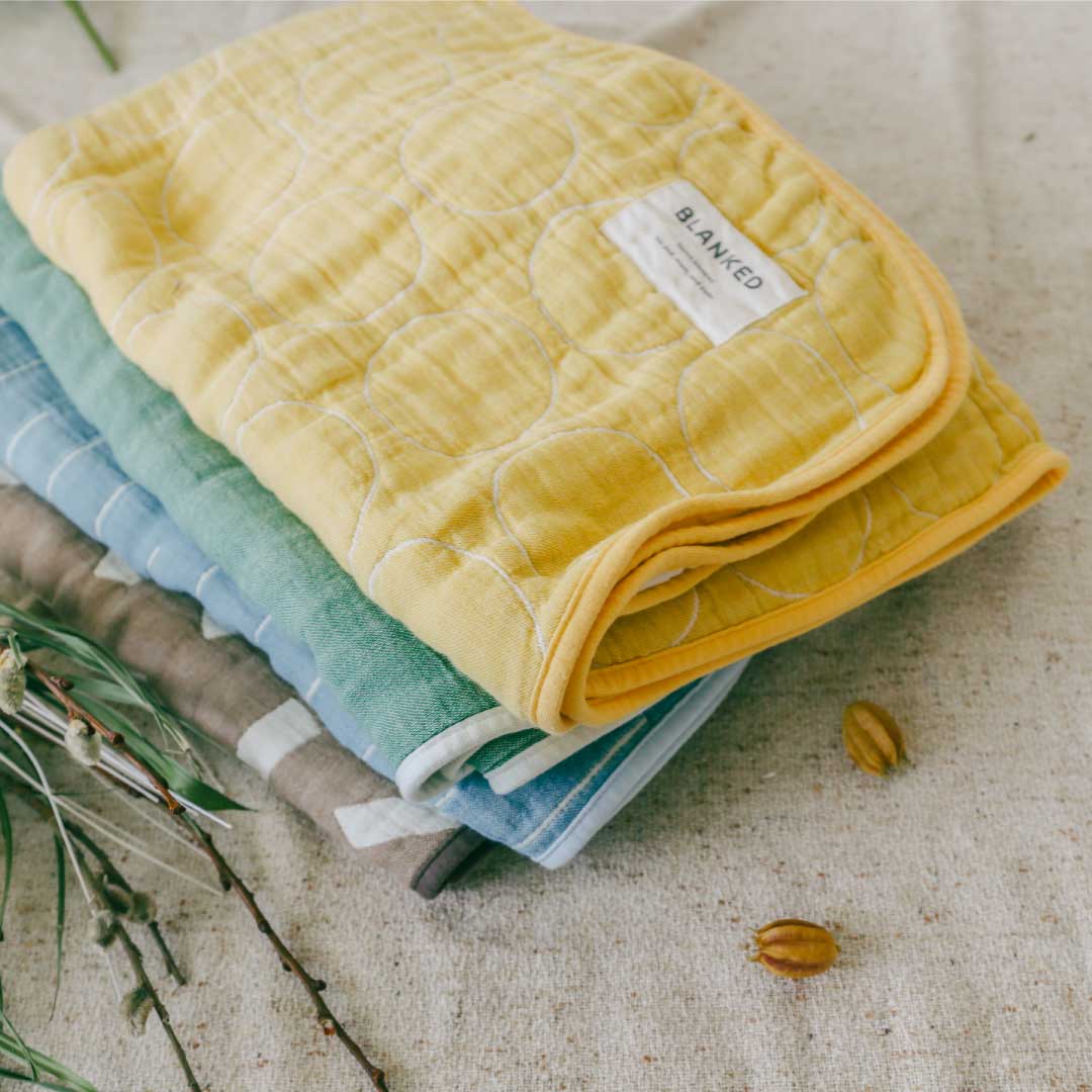 BLANKED est une marque de couvertures en gaze fabriquée par Nakamori, un fabricant établi de longue date qui produit du tissu depuis plus de 70 ans à Mikawa, berceau de l'industrie textile du coton. La base de la couverture en gaze est en « coton Mikawa ». Selon les documents historiques, le coton a été introduit pour la première fois dans la préfecture d'Aichi en provenance d'Inde, au Japon, et on dit que Mikawa était également le premier endroit où le coton national a été produit pendant la période Muromachi. Le coton Mikawa est un tissu en coton qui se transmet depuis des centaines d'années. Depuis lors, la région de Mikawa a continué d'hériter et d'explorer les textiles en tant que ville textile où se rassemblent les artisans du raffinage, de la teinture, du tissage et de la couture.