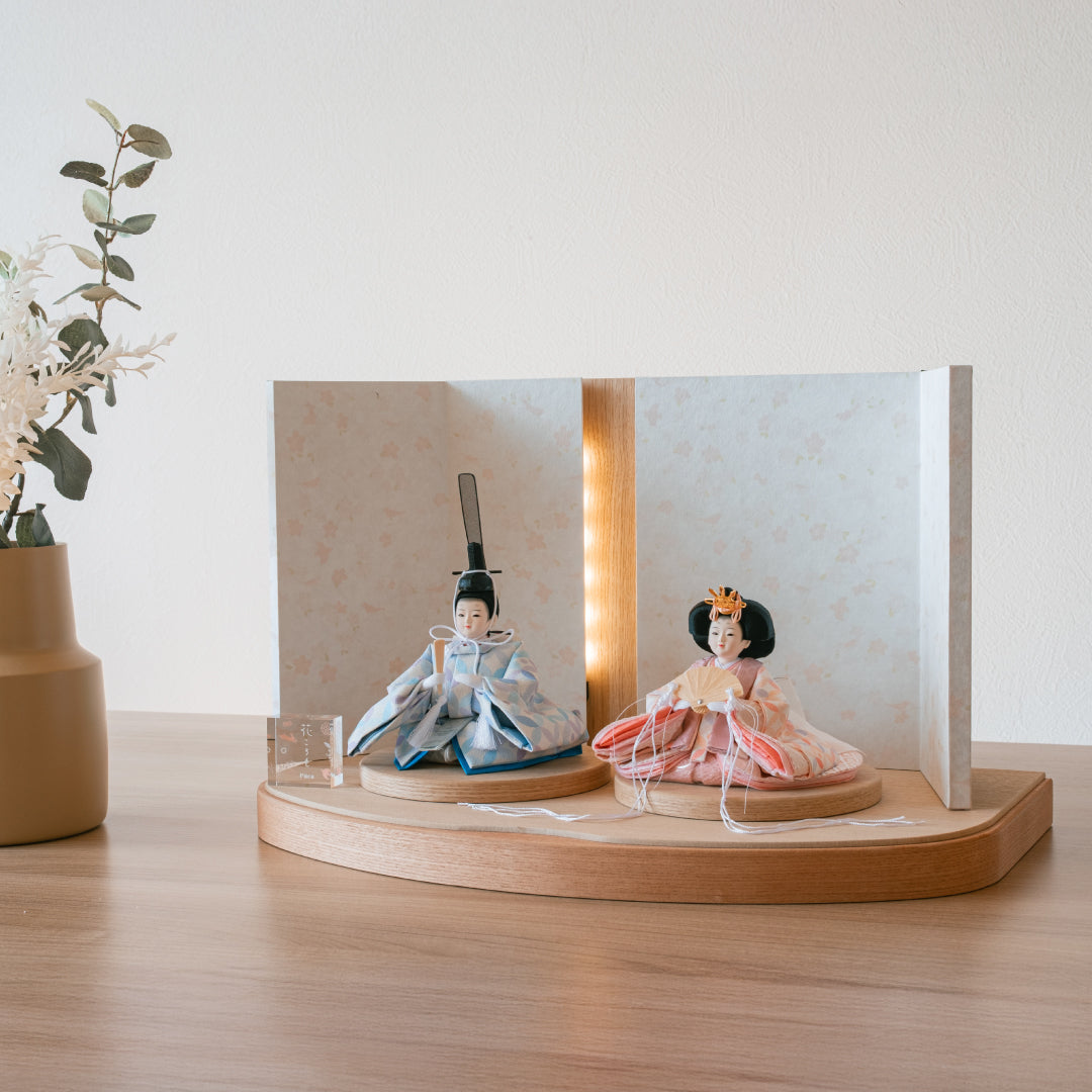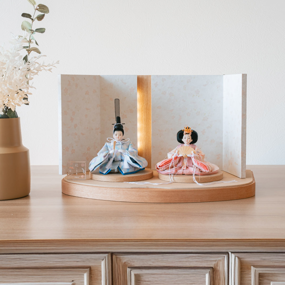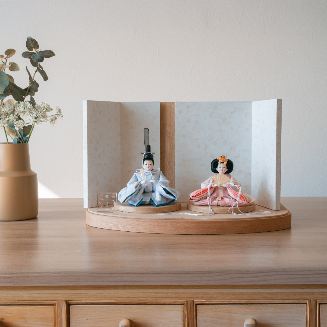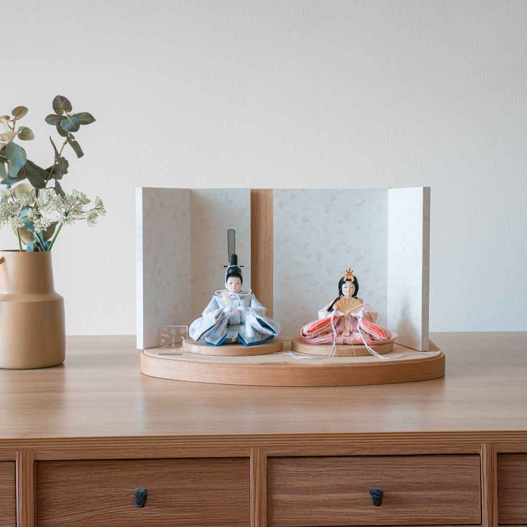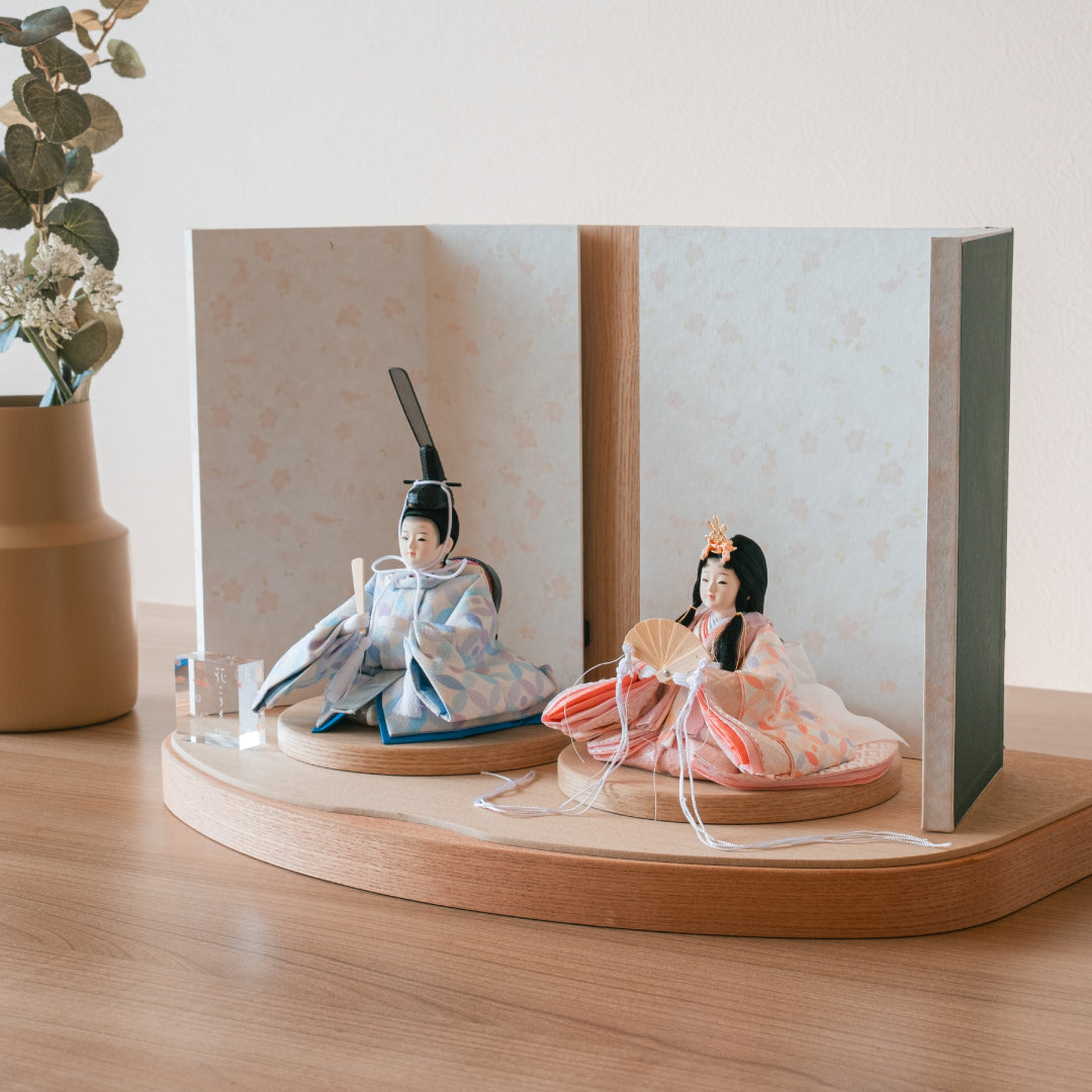 素材 | [Contenu de l'ensemble] ●Poupée garçon/Poupée fille (Un ensemble de poupées Wariage ou Osuberakashi Hina) ●Paravent à trois panneaux ●Présentoir ● 2 supports à billes (piédestaux) ● Fabrication de cartes [Contenu du cadeau] ● Coffret de soins 3 pièces (plume, gants, chiffon) ● Vêtements Hifu ● Cadre photo (avec boîte à musique du « Happy Doll's Festival ») |