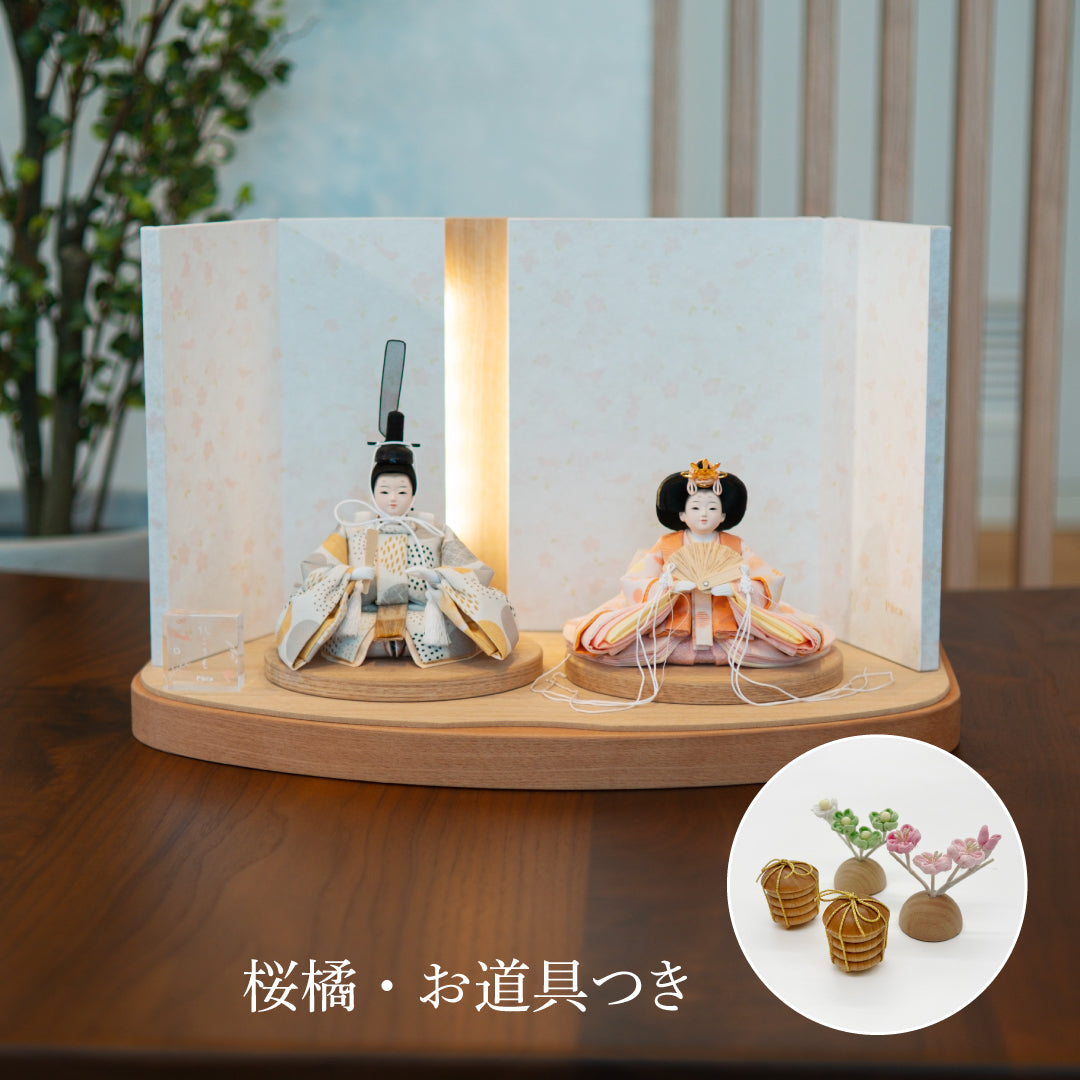 | 素材 | [Contenu de l'ensemble] ・Poupée homme/Poupée femme (Un ensemble de poupées Wariage ou Osuberakashi Hina) ・Paravent à trois panneaux ・Support décoratif ・2 socles ronds ・Fabrication de cartes [Contenu du cadeau] ・Ensemble de soins 3 pièces (plume, gants, chiffon) ・Vêtements Hifu ・Cadre photo (avec boîte à musique « Happy Doll's Festival ») |