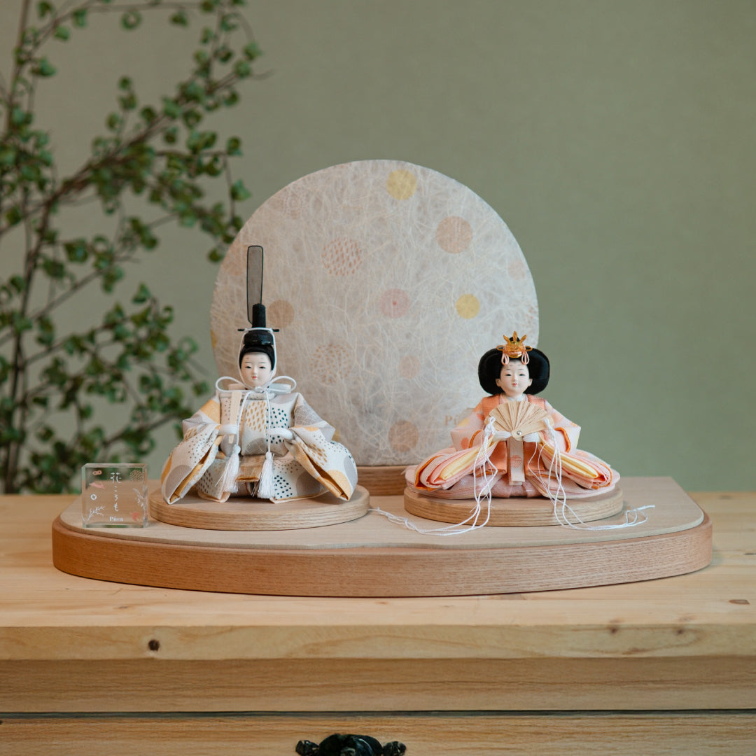 素材 | [Contenu de l'ensemble] ・Poupée homme/Poupée femme (Un ensemble de poupées Wariage ou Osuberakashi Hina) ·paravent ・Support décoratif ・2 socles ronds ・Fabrication de cartes [Contenu du cadeau] ・Ensemble de soins 3 pièces (plume, gants, chiffon) ・Vêtements Hifu ・Cadre photo (avec boîte à musique « Happy Doll's Festival ») |