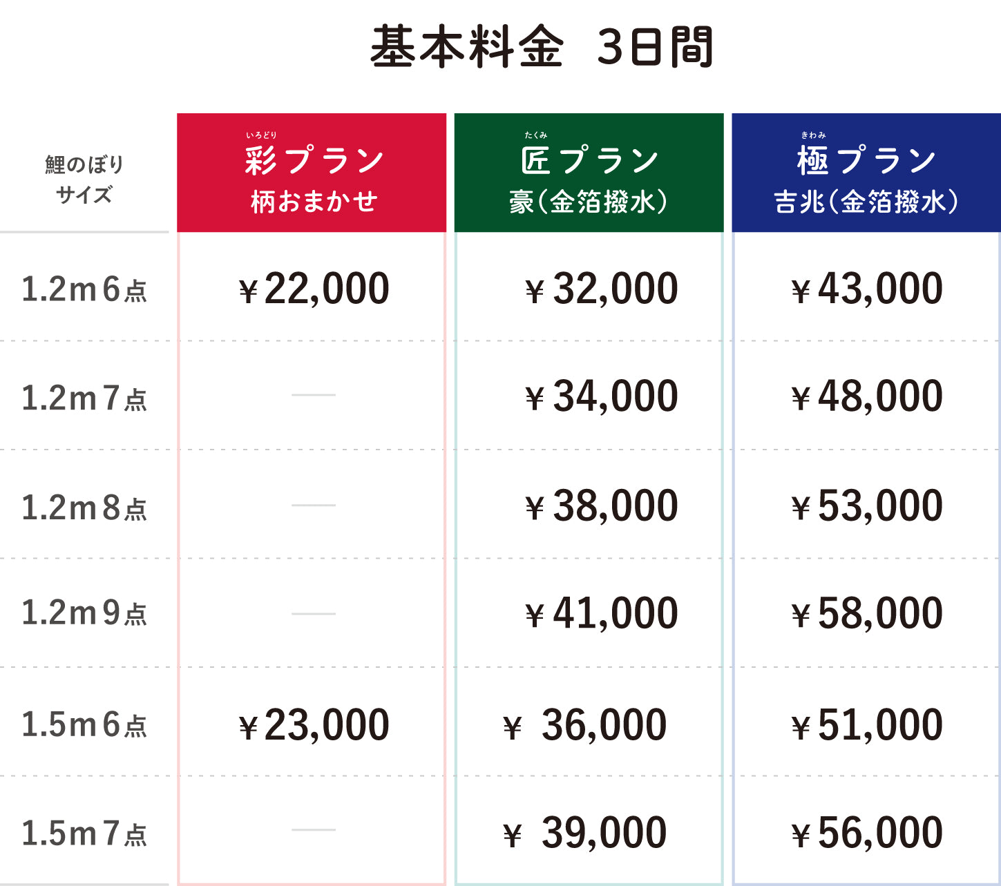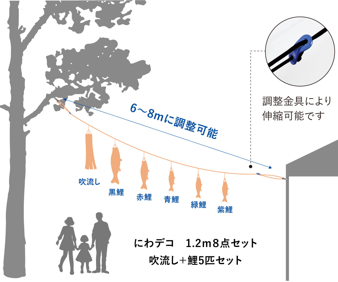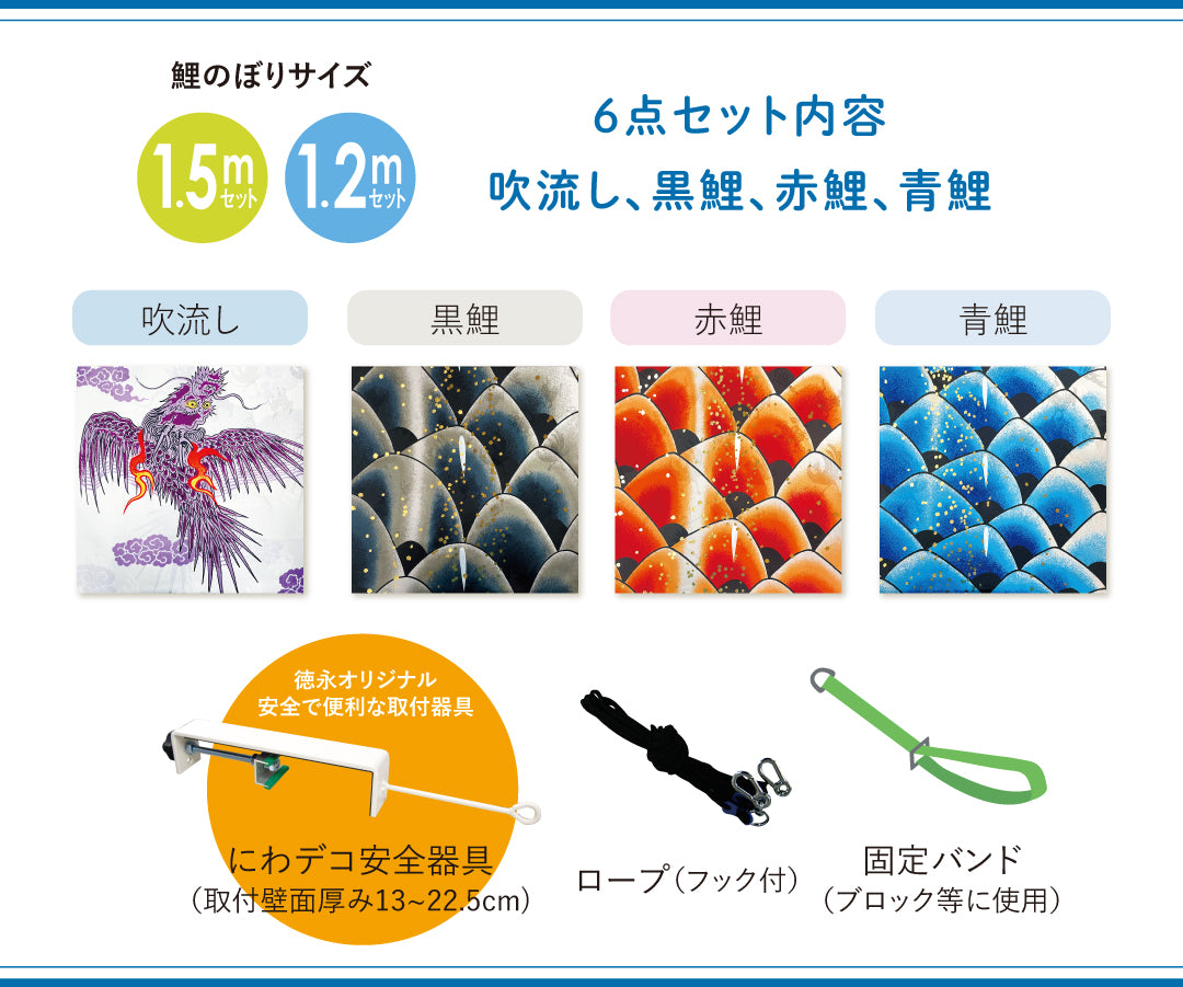圧倒的な存在感の6~3mの大きな鯉のぼり。風に乗って大空を泳ぐ姿は圧巻で、イベント会場のランドマークになります。