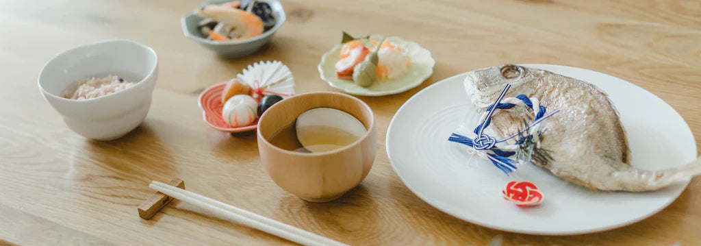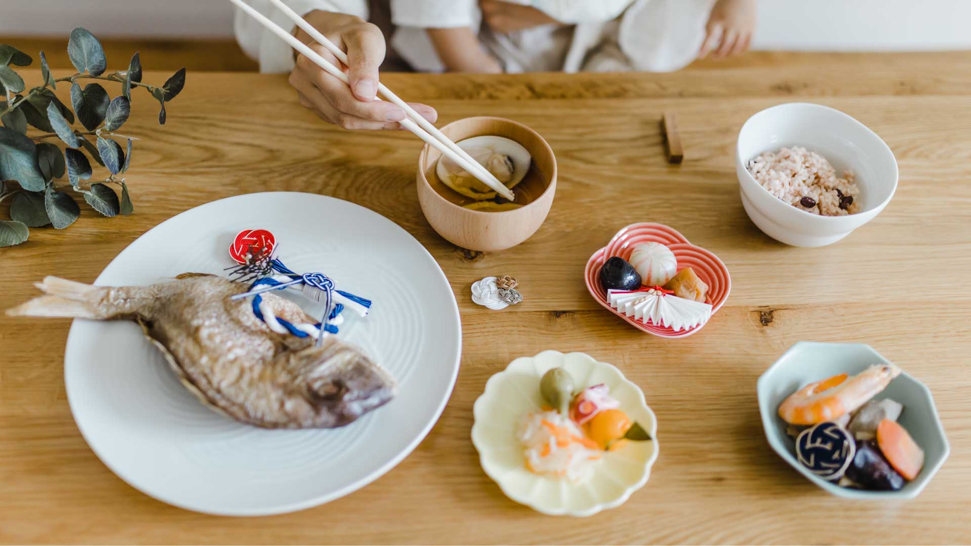 頭から尾まで揃った姿に縁起が良いとされる焼き魚。おめでたい(鯛)の語呂合わせから、鯛の焼き鯛を準備するのが一般的です。