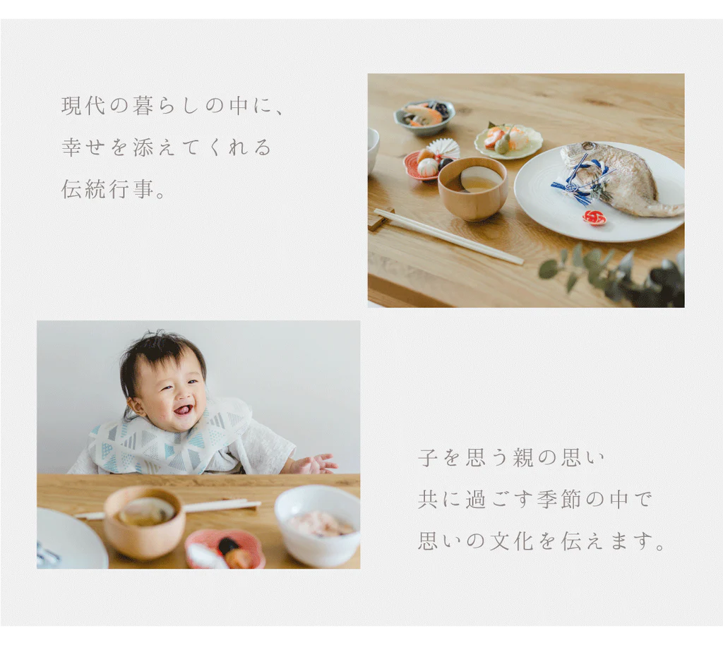 「一生食べることに困らないように」「病気をせず健康に育ちますように」との願いをこめて赤ちゃんに食べ真似をさせ、赤ちゃんの健やかな成長を願う儀式です。