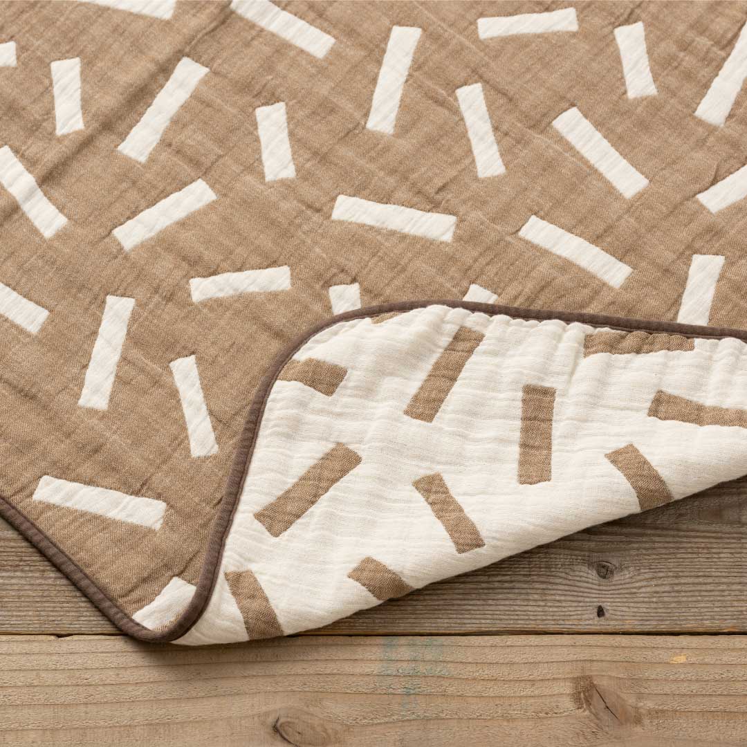 BLANKED(ブランケッド)は、綿繊業発祥の地「三河」で70年以上、生地づくりを行なってきた老舗メーカー「ナカモリ」がつくる、ガーゼケットのブランドです。ガーゼケットの土台となっているのは「三河木綿」。文献によると、日本ではじめて愛知県にインドより綿が伝来したのち、室町時代に国産木綿が起こったのも三河の地が最初と言われています。それから数百年の時を経てもなお受け継がれてきた綿織物、それが三河木綿です。以来、現在まで三河地域では、精錬・染色・織・縫製、それぞれの職人が集まる繊維の町として、織物を継承・探求し続けています。
