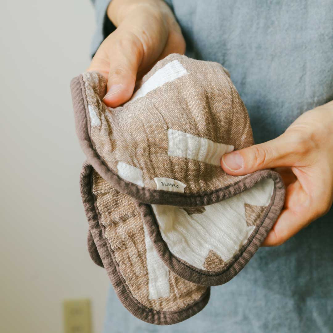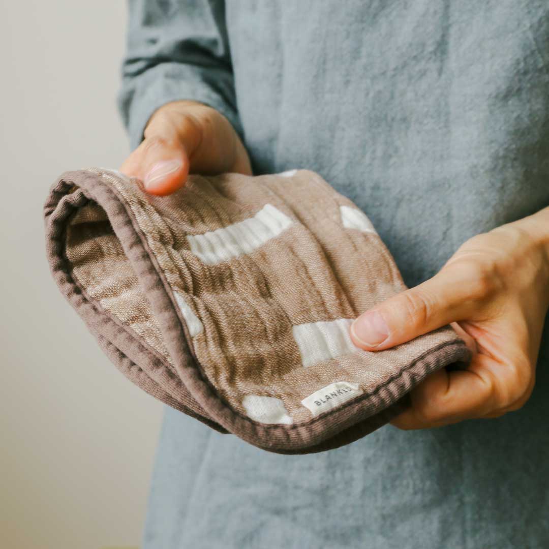 BLANKEDのガーゼ生地は、ふんわりして厚みがあり一見何層もたくさん重ねているように見えますが、実は4重で仕上げています。