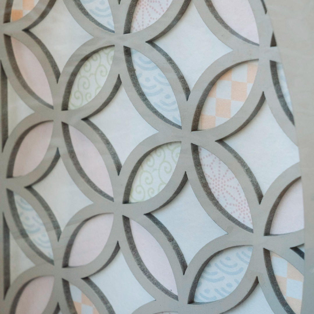 背面には七宝柄を透かし加工を施し、柔らかな色合いを差し込んだ和モダンな雰囲気が羽子板をやさしいく引き立てます。