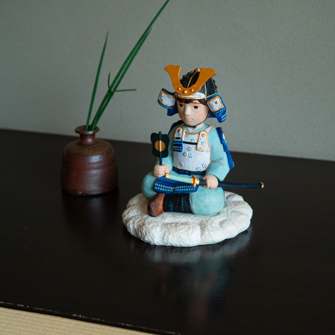 材質 : 五月人形、台座:ヒノキ材