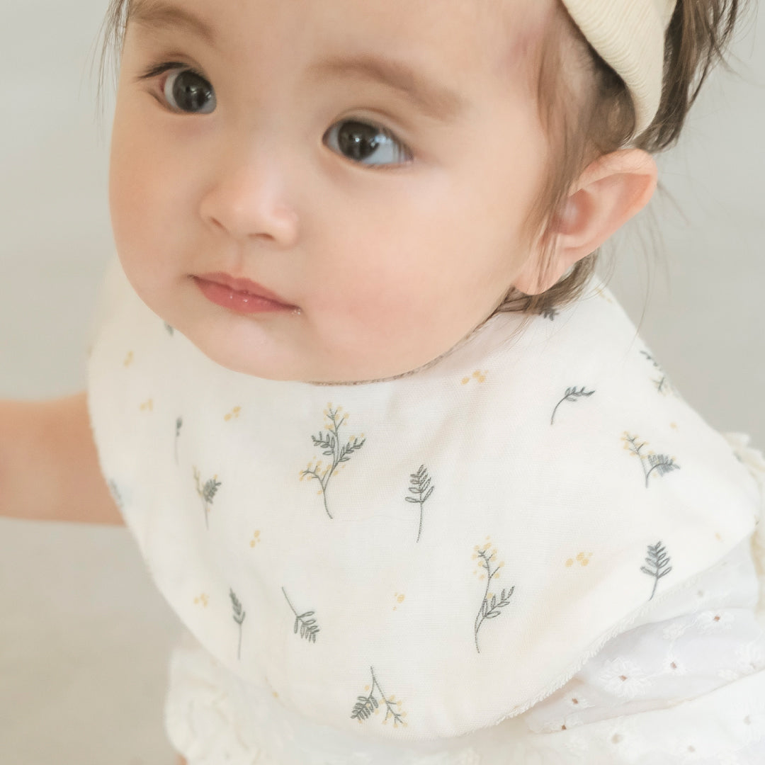出産祝い 3点セット《 ミモザ 》スタイ&ブルマ&リブヘアバンド