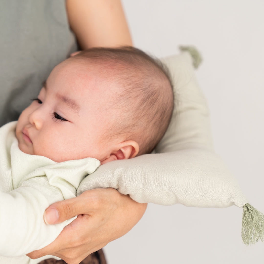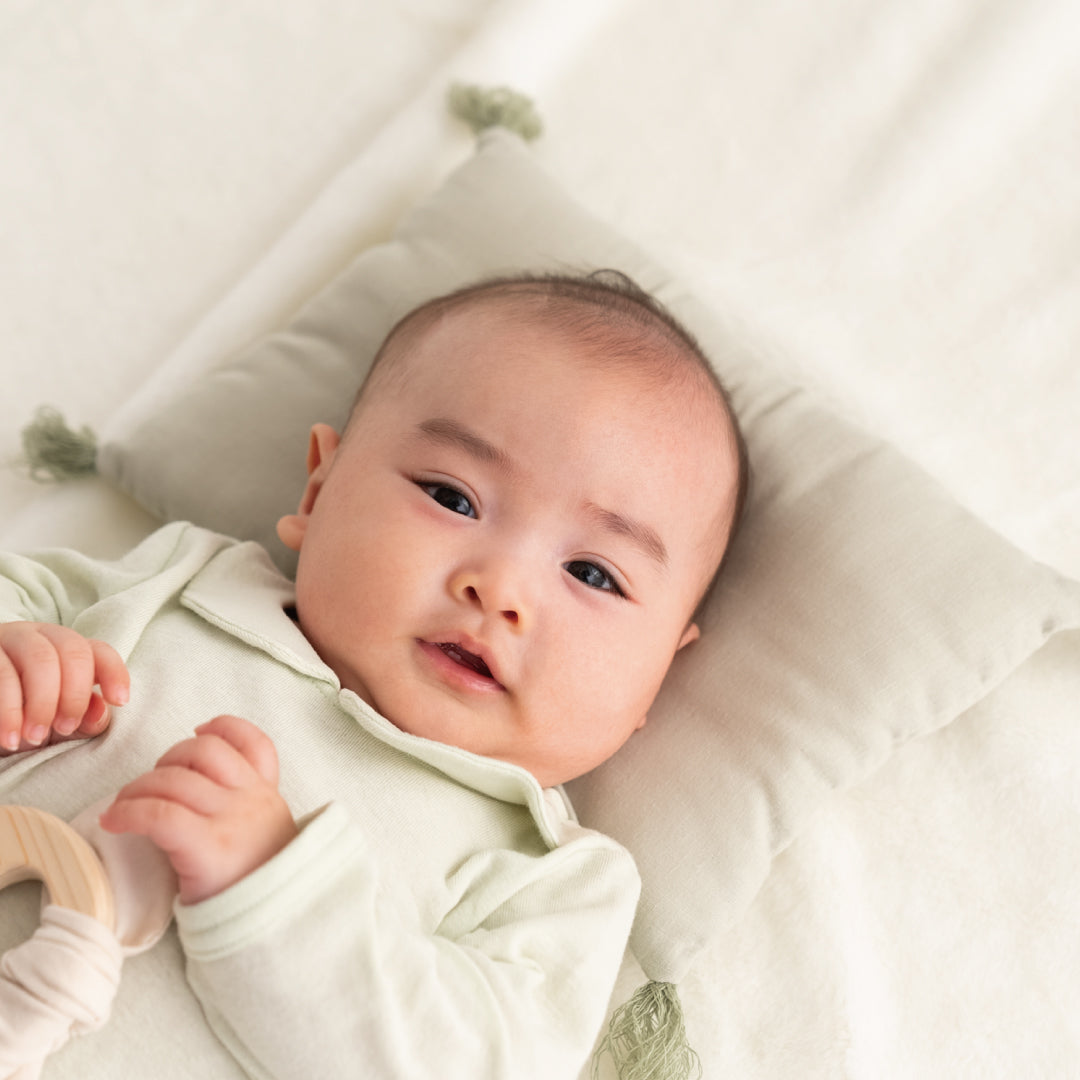 中央にほどよい“へこみ”があり、赤ちゃんの頭を優しくフィット。寝ている間の頭のズレを防ぎ、安定した姿勢をサポートします。