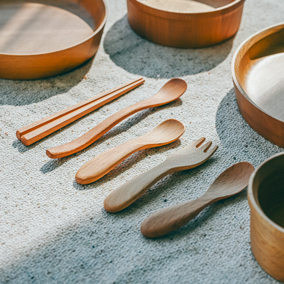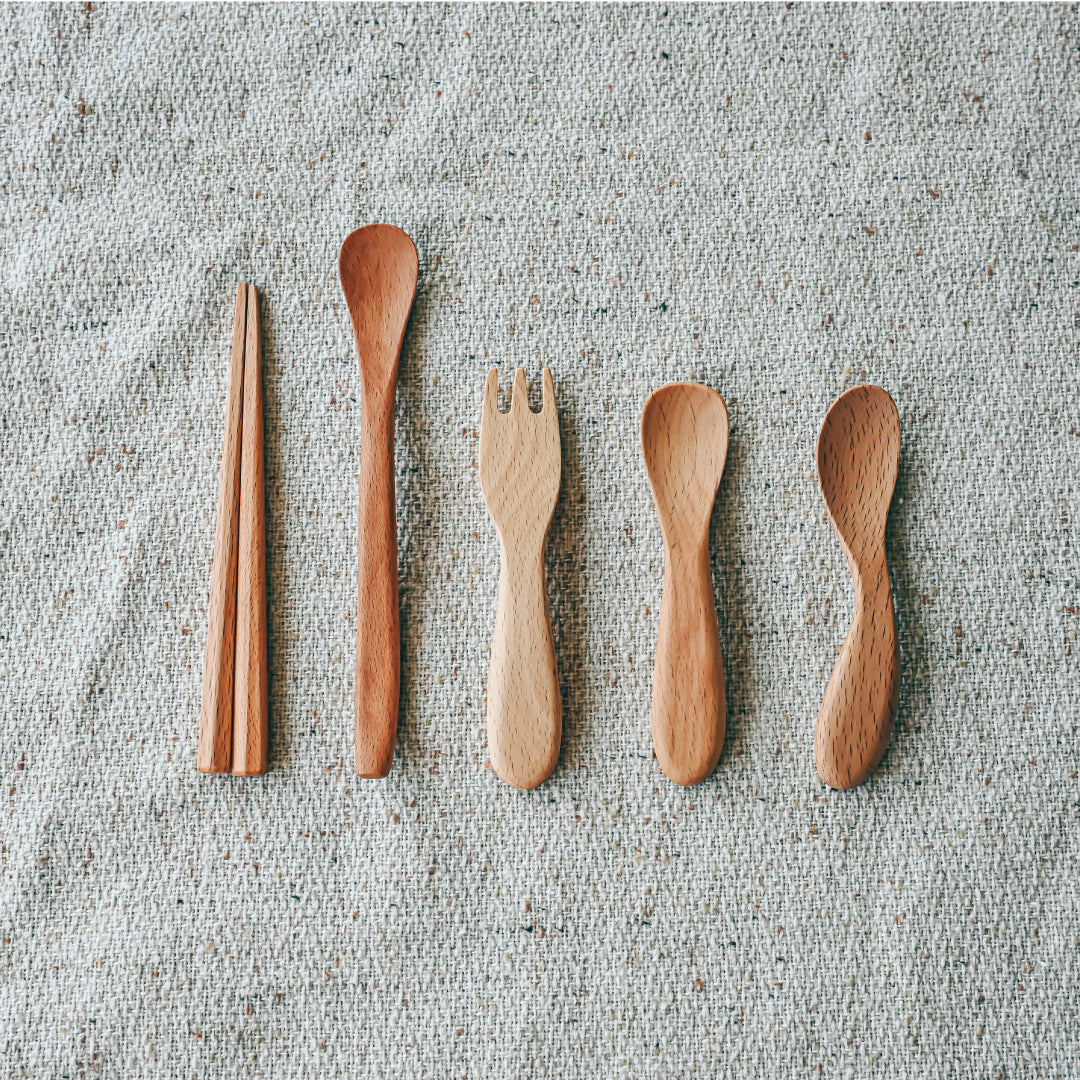 スプーンと指は持ち手のくびれ、角が優しい形状。
