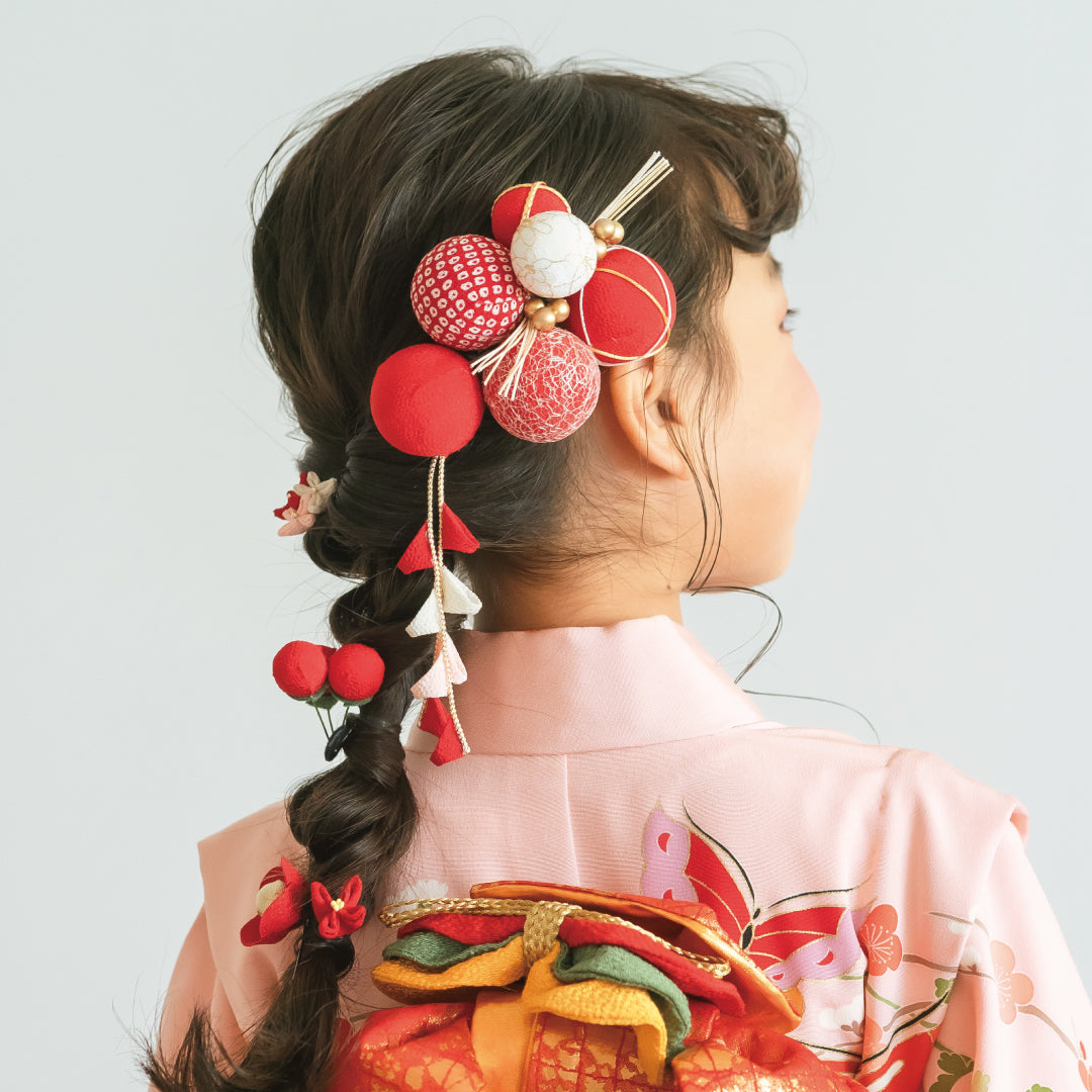 七五三、発表会、卒園式、写真撮影など、さまざまなシーンで使える万能デザイン。日本髪にも合わせやすく、着物や袴スタイルとの相性も抜群です。5本セットだから、左右に分けたり、後ろ髪に散らしたり、アレンジの幅がぐっと広がるのも魅力。ギフトにもぴったりな、長く使える和装小物です。