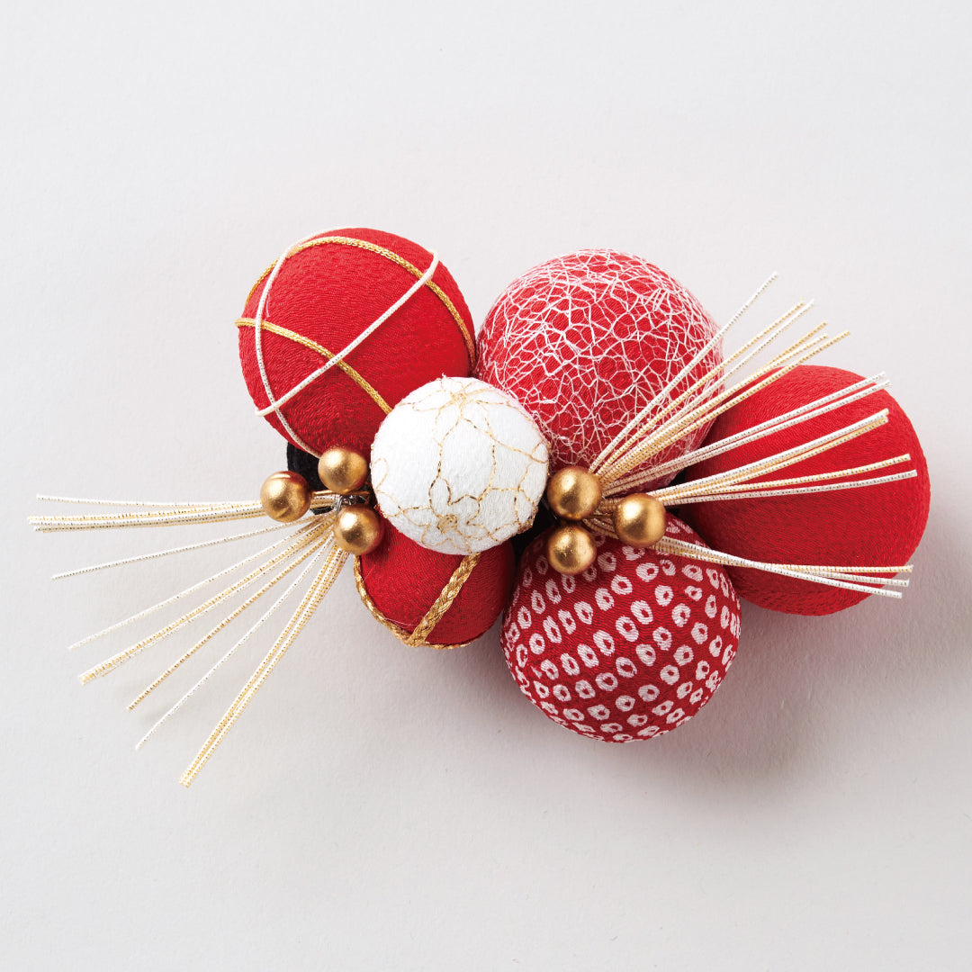 職人技が光る美しい手毬を贅沢に使用したヘッドドレス。ひとつ添えるだけで、特別な日の装いをより華やかに、上品に仕上げてくれます。クリップ仕様なので、付けるだけで立体感のある豪華アレンジが完成。ヘアアレンジが苦手な方でも、簡単に“晴れの日の装い”を楽しめます。