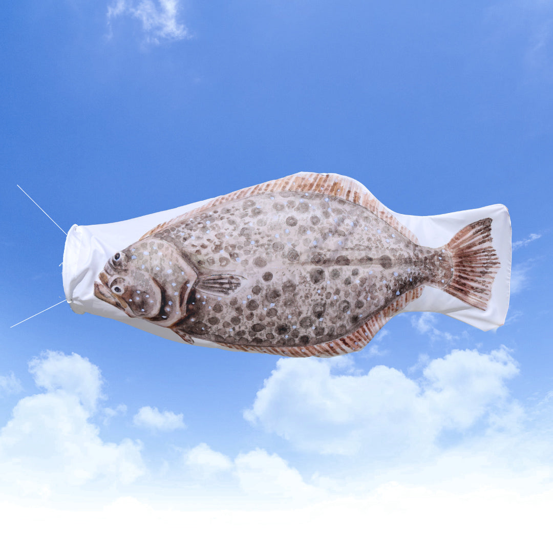 「ヒラメのぼり」は、伝統的な鯉のぼり制作技術で作られた、冬~春に旬を迎える高級魚ヒラメをモチーフにした立体広告ツールです。