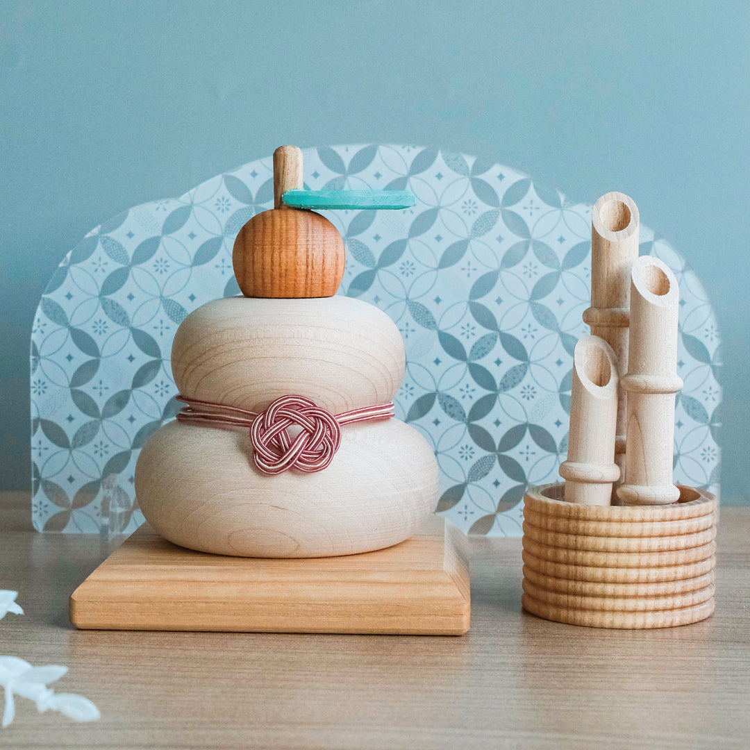 鏡餅と合わせて飾れる、木製の小ぶりな門松。天然木の素材感をそのまま生かしたやわらかなデザインのため、玄関・テレビボード・飾り棚などにもスッと馴染みます。