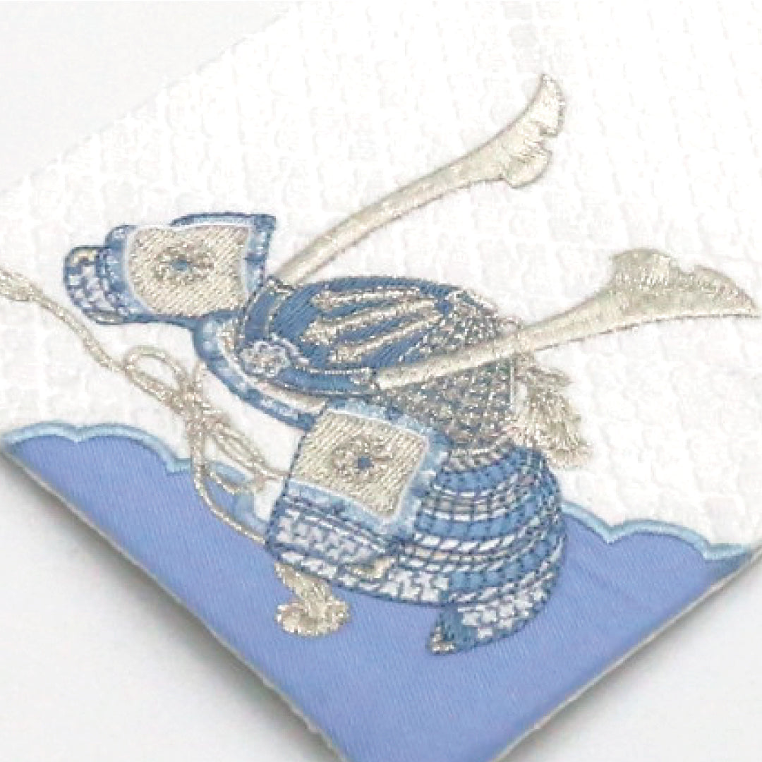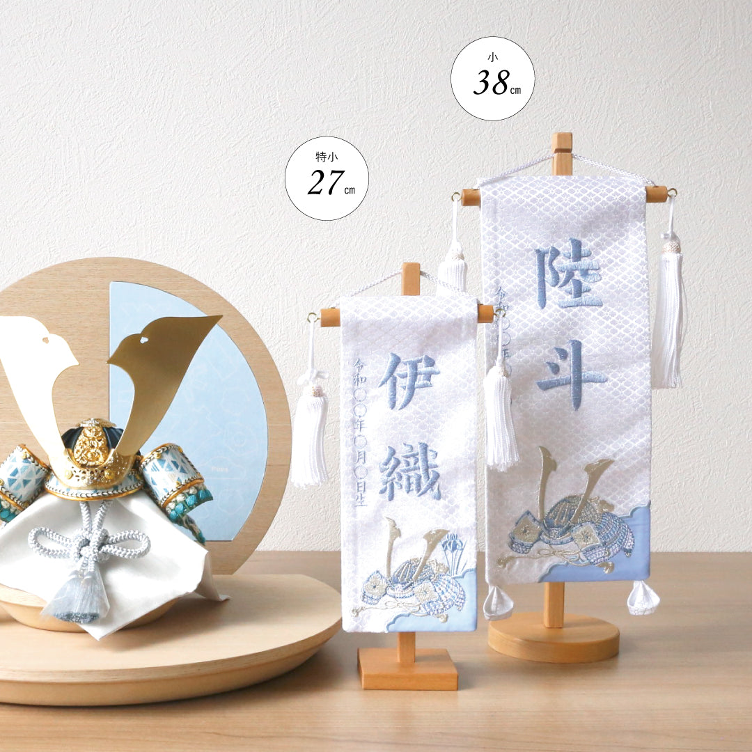 金襴刺繍名前旗 〈白兜〉 小38cm/特小27cm