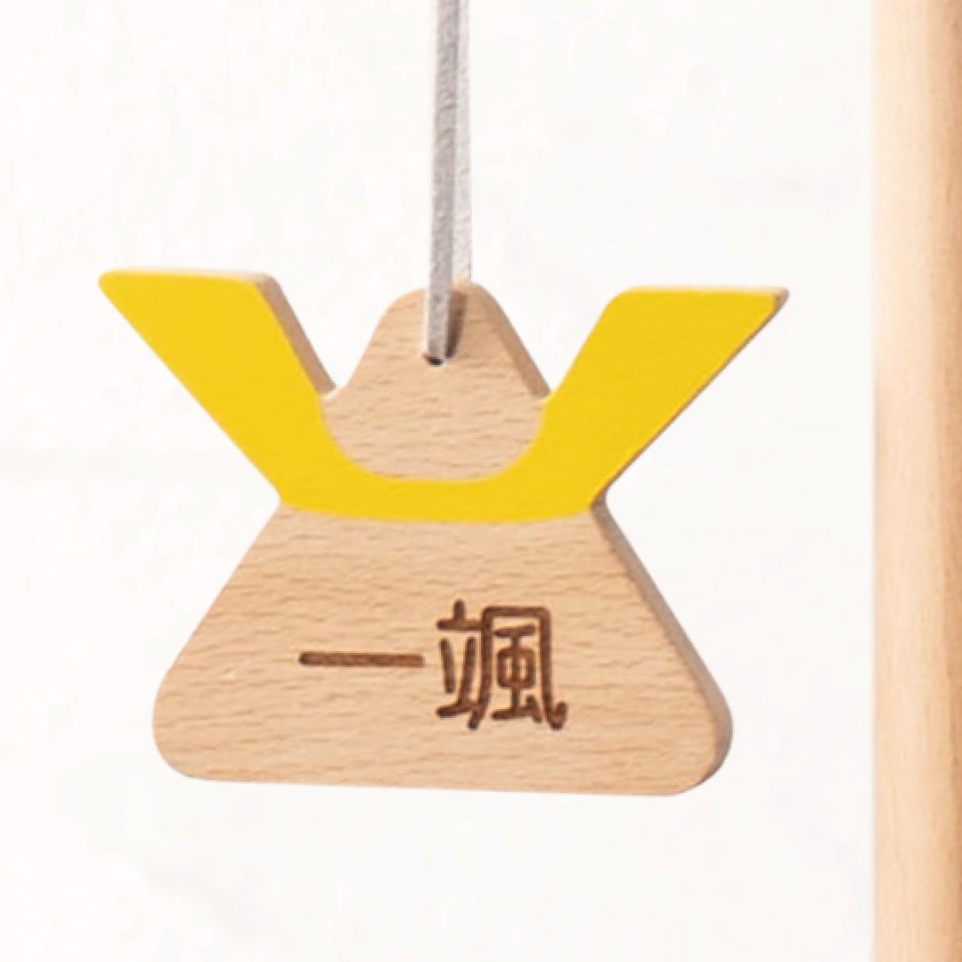 お名前をレーザー彫刻でお入れします。端午の節句で飾られる 兜をモチーフに使用しました。