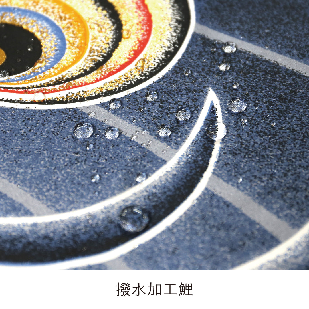 シルクタッチの最高級ポリエステルサテン素材を使用、アルミ金箔を贅沢にちりばめました。また、鯉のぼり・吹流し共に雨水に強い撥水加工を施した豪華な仕様となっています。