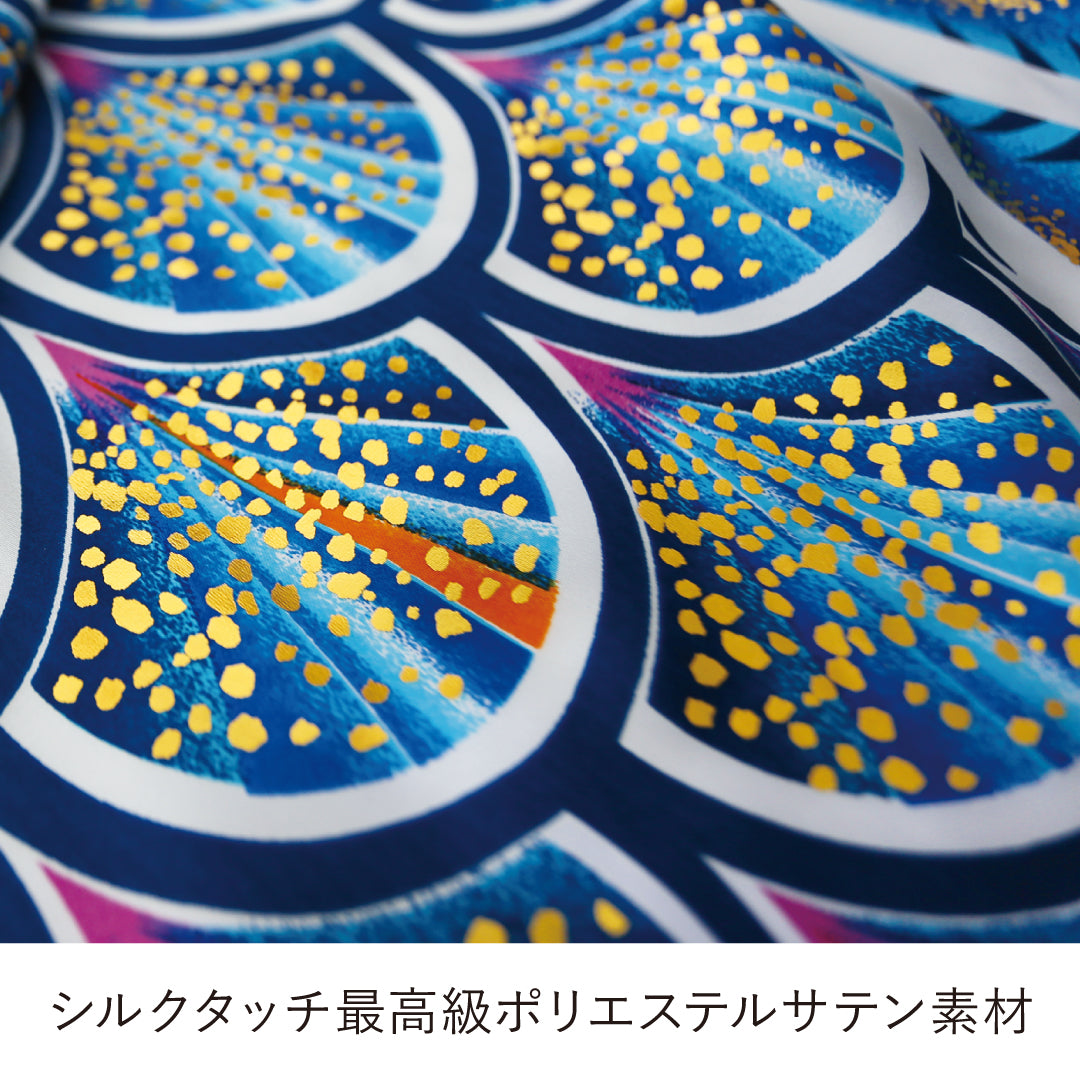 生地はシルクタッチの最高級ポリエステルサテン素材を使用し、太陽光線を浴びると白銀色に輝きます。